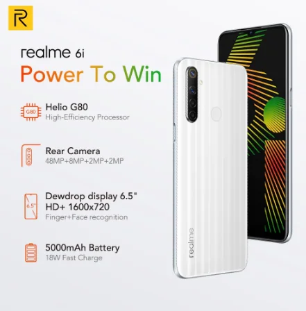 Смартфон Realme 6i, 3 + 64 ГБ, MTK Helio G80, android 10, 6,5 дюйма, 48 МП, 5000 мАч
