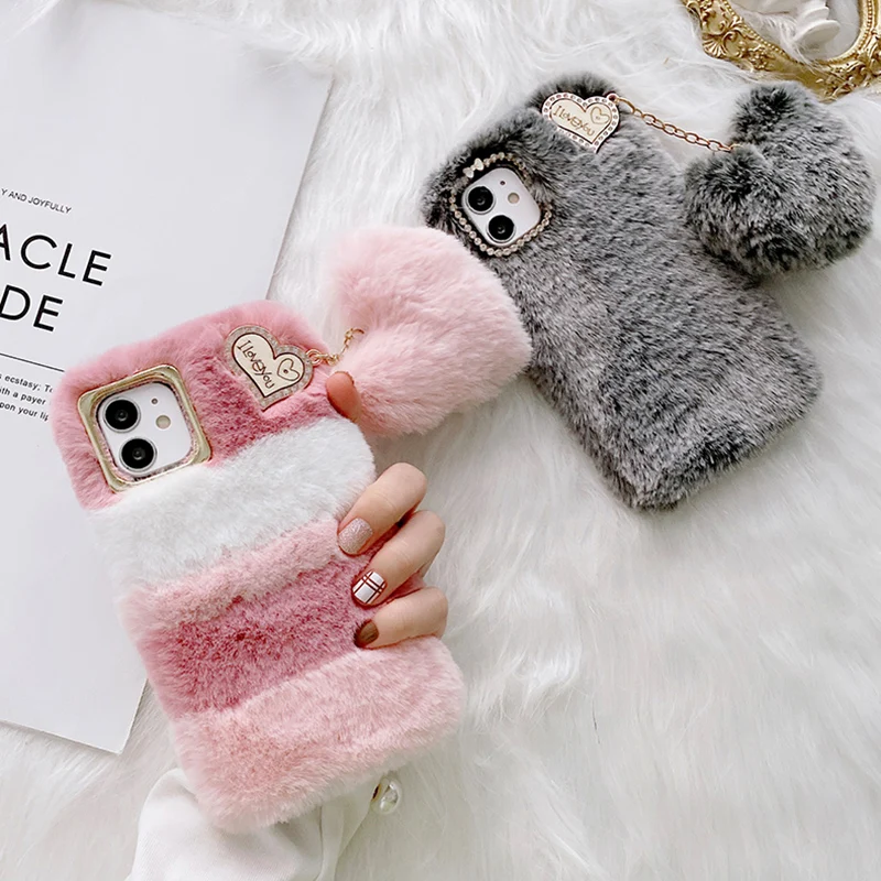 Feature 13D Cute Luxury Warm Fur Plush diamond Phone Case