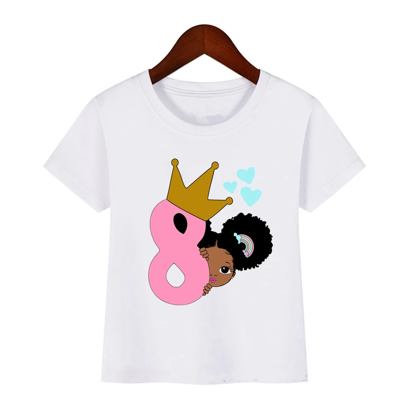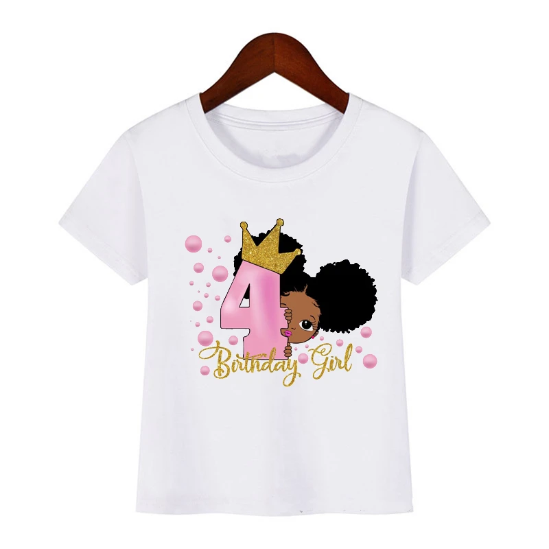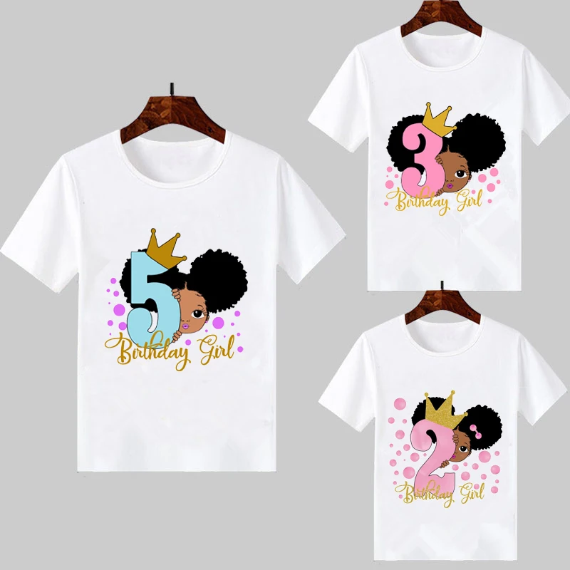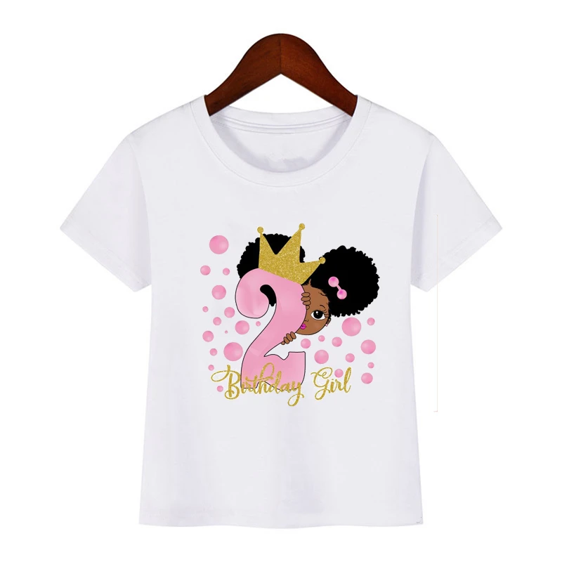 2021 милая маленькая черная футболка с принтом меланина для девочек на день рождения, Детские Забавные футболки от 1 до 8 лет, топ для маленьких девочек белого цвета