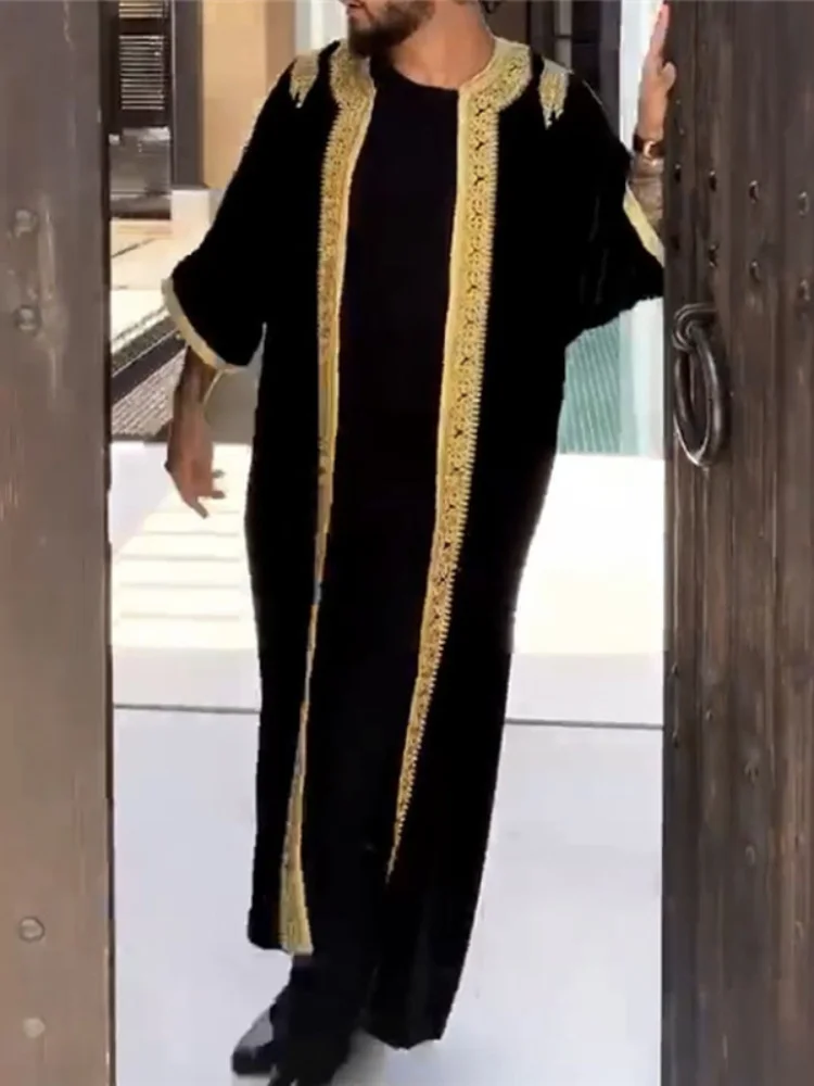 Абайя Мужская мусульманская Мода арабская мужская одежда 2021 джубба Тюбе кафтан платье воротник стойка Золотой принт скромная мусульманская одежда мужская