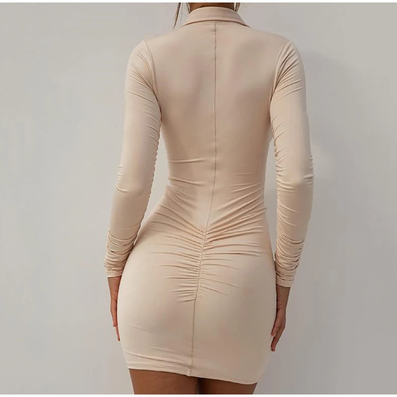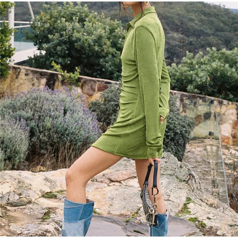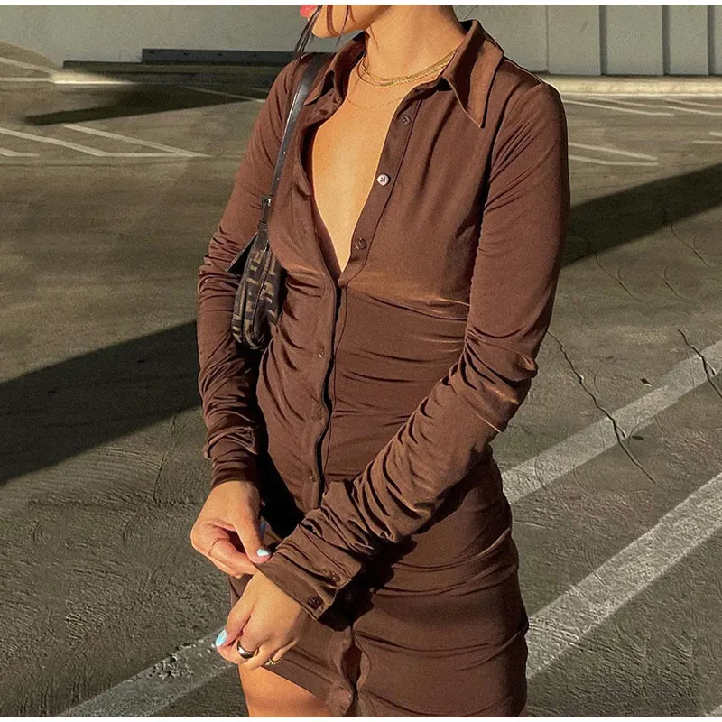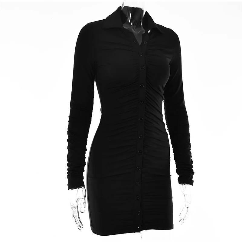 Женское облегающее мини-платье на пуговицах, эластичное платье с высокой талией, рюшами и длинным рукавом, модное платье для вечерние, осень 2021