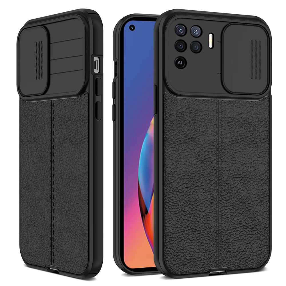 Нажимной чехол для камеры с защитой от падения для Oppo Reno 5 Lite Lychee, кожаные текстурные чехлы с рисунком для Reno5 4 Lite 5F Coque