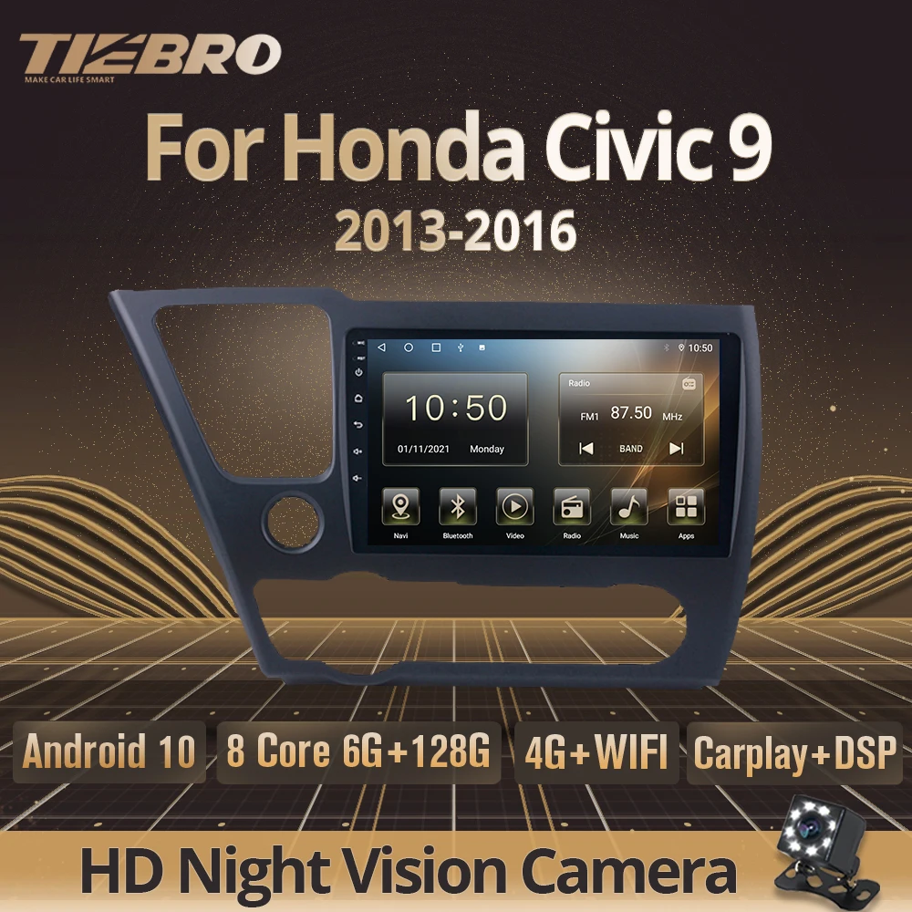 Автомагнитола TIEBRO, 2DIN, Android 2013, для Honda Civic 9 2016-, GPS-навигация, автомобильная стереосистема, автомобильный мультимедийный плеер, автомобильное радио, Carplay
