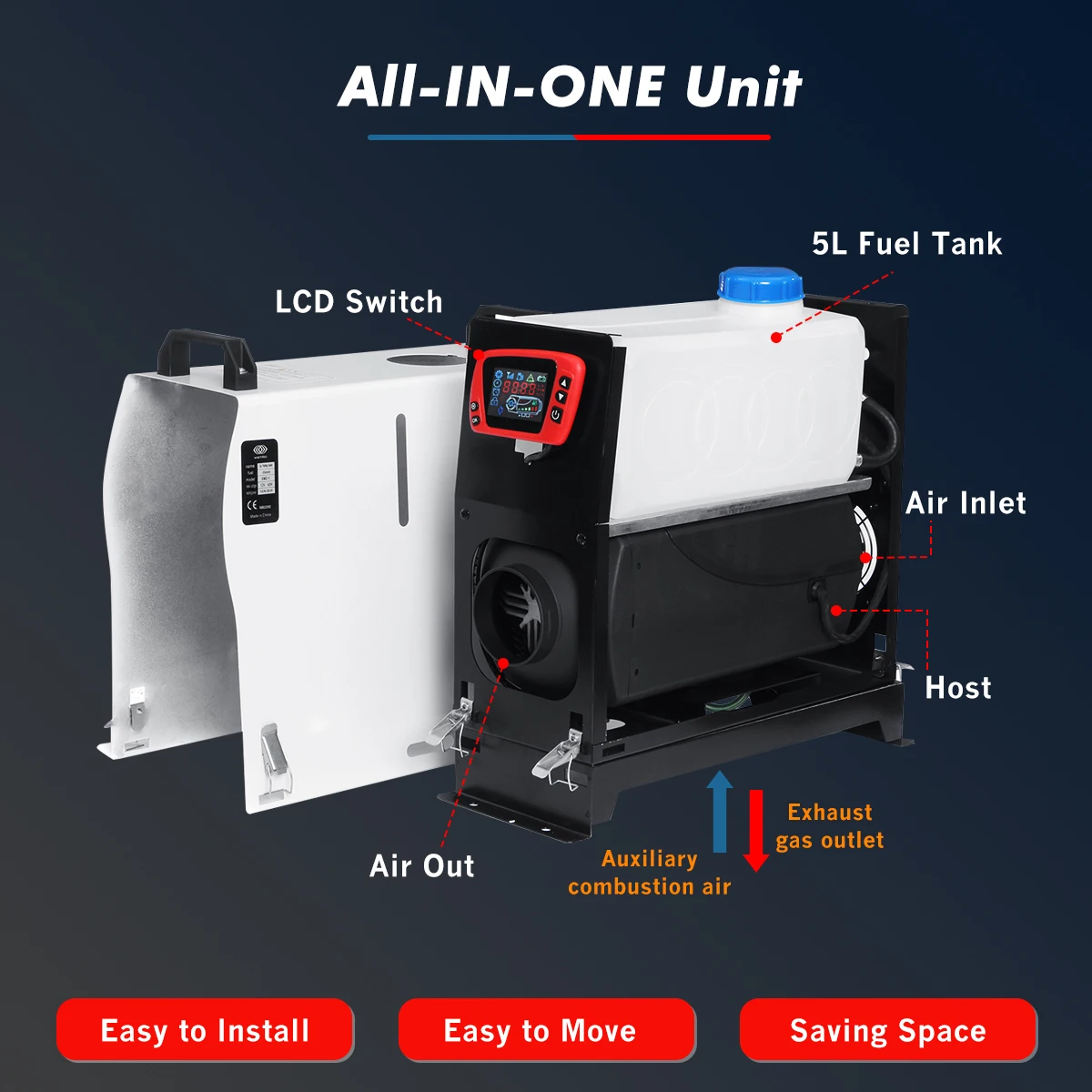 Особенности-Все в одном блоке, экономит место и легко перемещается.-Простота установки, удаления и обслуживания.-Избавьтесь от повреждения автомобиля, вызванного резким падением температуры.-Низкий уровень шума: снижение уровня шума при минимальном уровне шума.-Простая установка: компактный дизайн хорошо подходит для использования в различных узких пространствах.-Низкое потребление топлива и энергии в течение более длительного периода эксплуатации.-Плавный, автоматический комнатный контроль температуры с предварительной установкой температуры.-С непрерывным мониторингом и диагностической системой.-Топливо поставляется из собственного бака транспортного средства.-Применимо к: различным дизельным механическим транспортным средствам, таким как автомобили, автобусы, RVs, грузовики, инженерные транспортные средства и т. д.