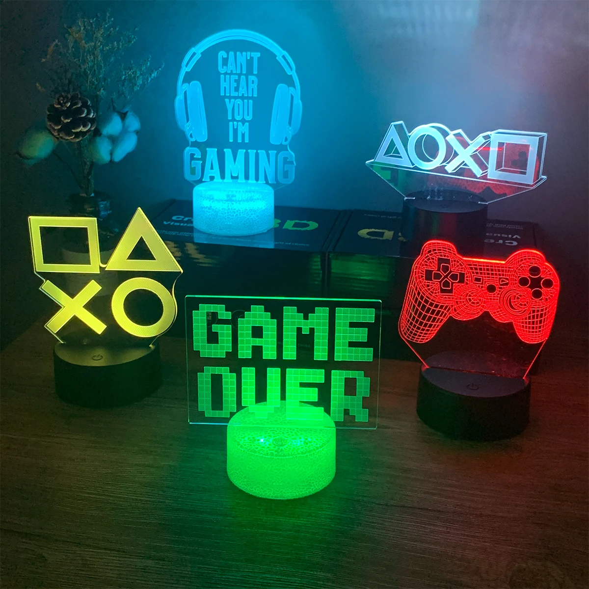 Ночник 3D для игровой комнаты, настольное освещение для настройки, декор для настольной игровой консоли, значок с датчиком логотипа, прикроватный подарок для детей