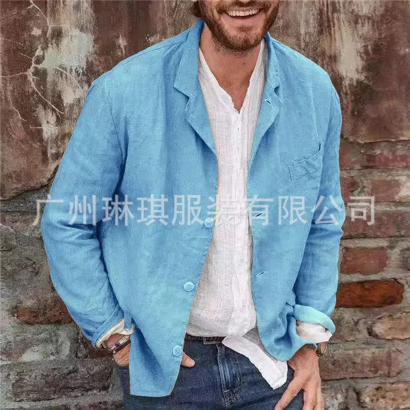 2021 взрывы европейские и американские мужские весенние и осенние повседневные хлопковые и льняные свободные блейзеры Топы