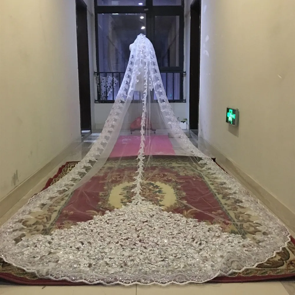 Роскошная блестящая свадебная фата с блестками, церковная Фата, однослойная металлическая расческа, длиной 5 метров, свадебные аксессуары