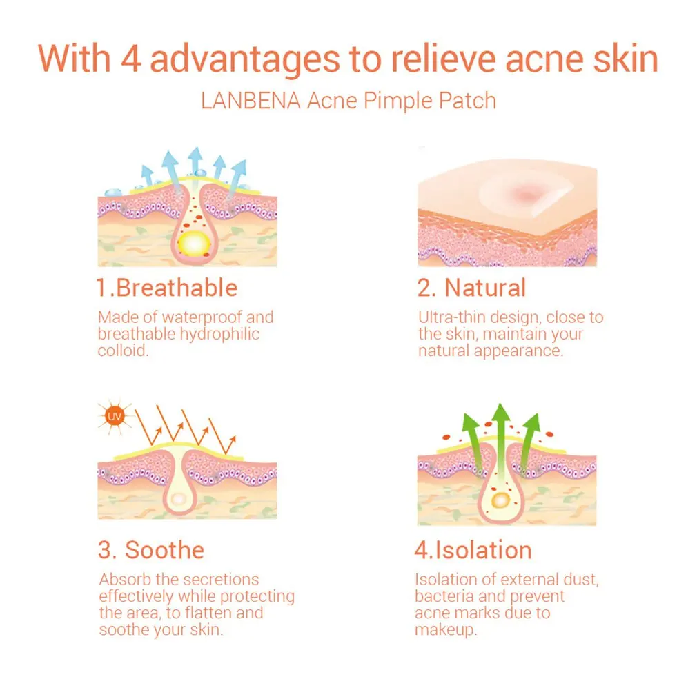 1. Безопасность: Наши прыщей патч разработан с 0,3 мм легко поглощают воду коллоид из Бельгии. Не повредит вашу кожу.