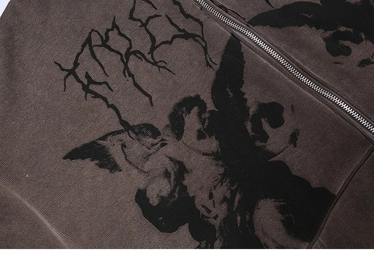 Женская уличная одежда в стиле хип-хоп, толстовки, Женская куртка с принтом ангела, куртка с надписью Angel Dark, пальто, одежда гот, Харадзюку Y2k, куртка в стиле панк, верхняя одежда на молнии