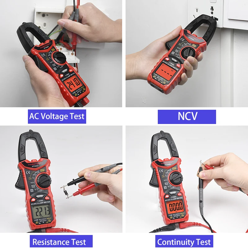 Токоизмерительные клещи HT206D, амперометрические клещи, амперметр, профессиональный цифровой автомобильный мультиметр HABOTEST 600A, тестер переменного и постоянного тока