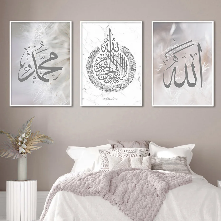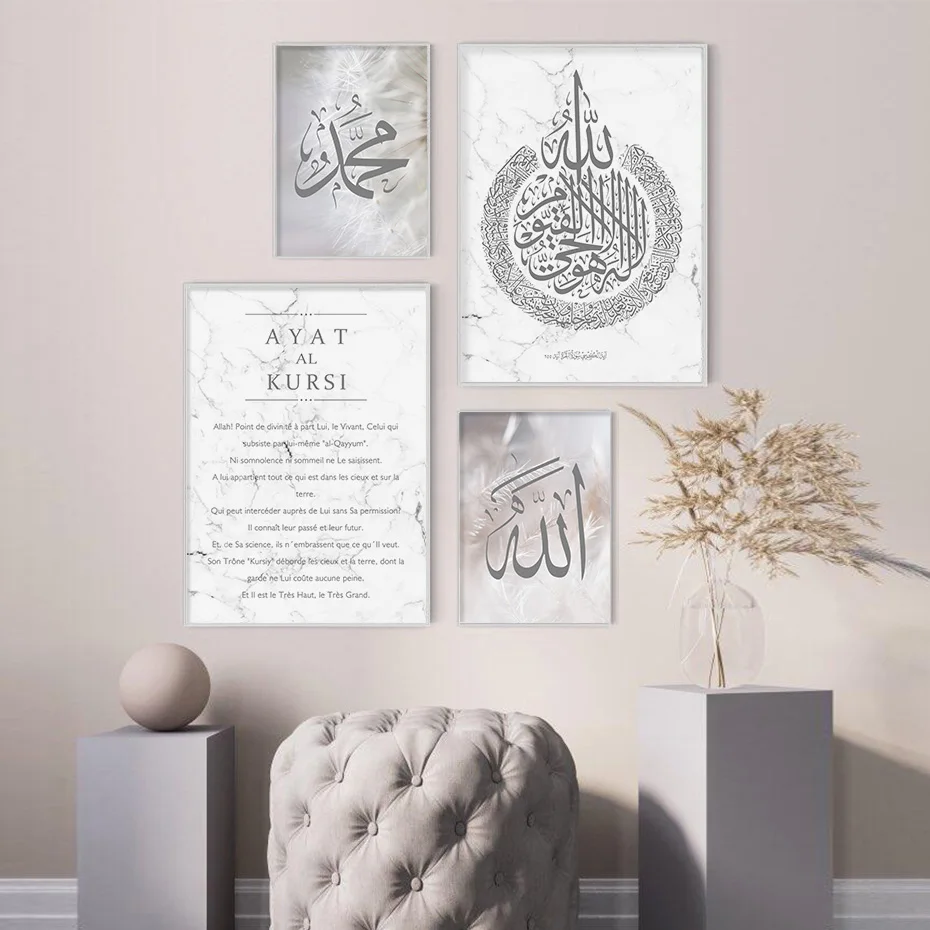 Современная мусульманская каллиграфия Ayat, Al-Kursi, мраморные картины Корана, Картина на холсте, постеры и принты, настенное искусство, декор гостиной