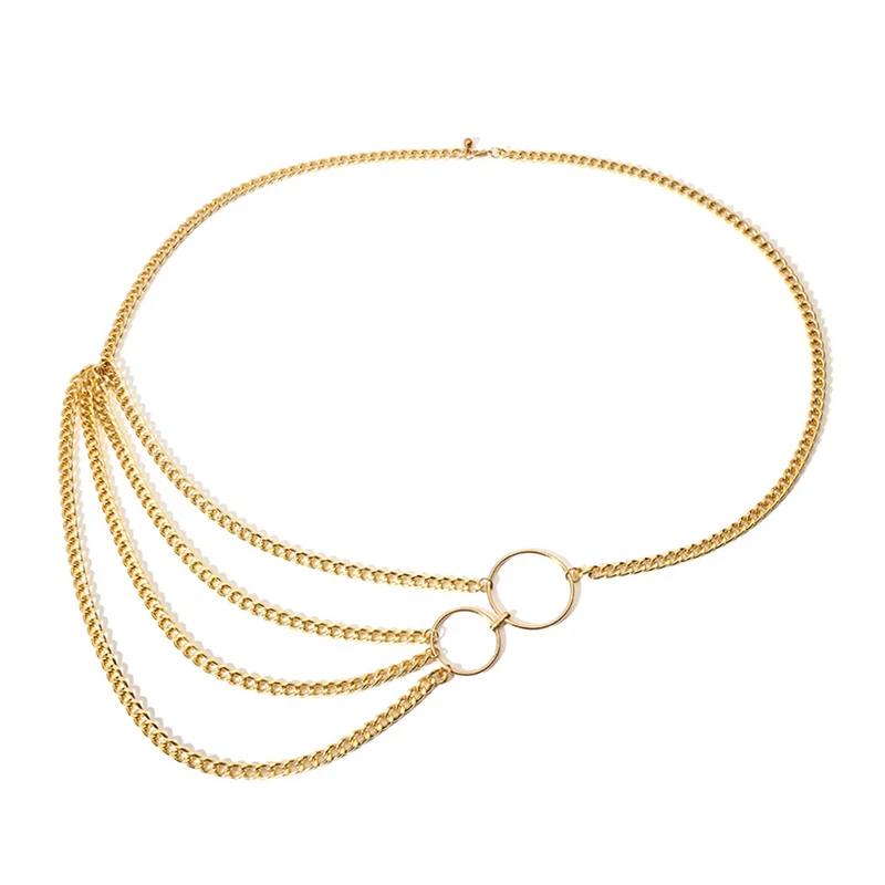 Пояс-цепочка на талию, 110 см, Золотая сетка, металлическая цепочка