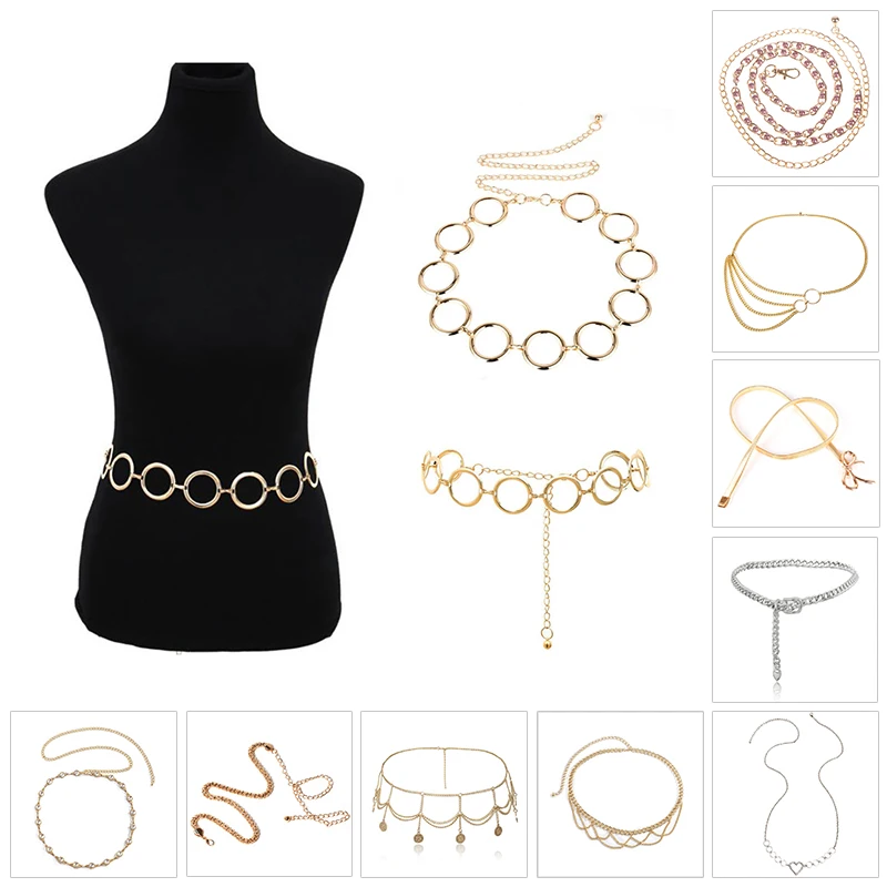 Сексуальная цепочка на талию, с кристаллами, готический, серебристы...