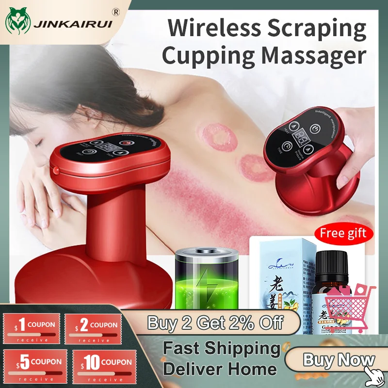 Jinkairui Электрический баночный массажер вакуумный всасывающий терапия массаж скребком гуаша сжигатель жира для похудения массаж тела
