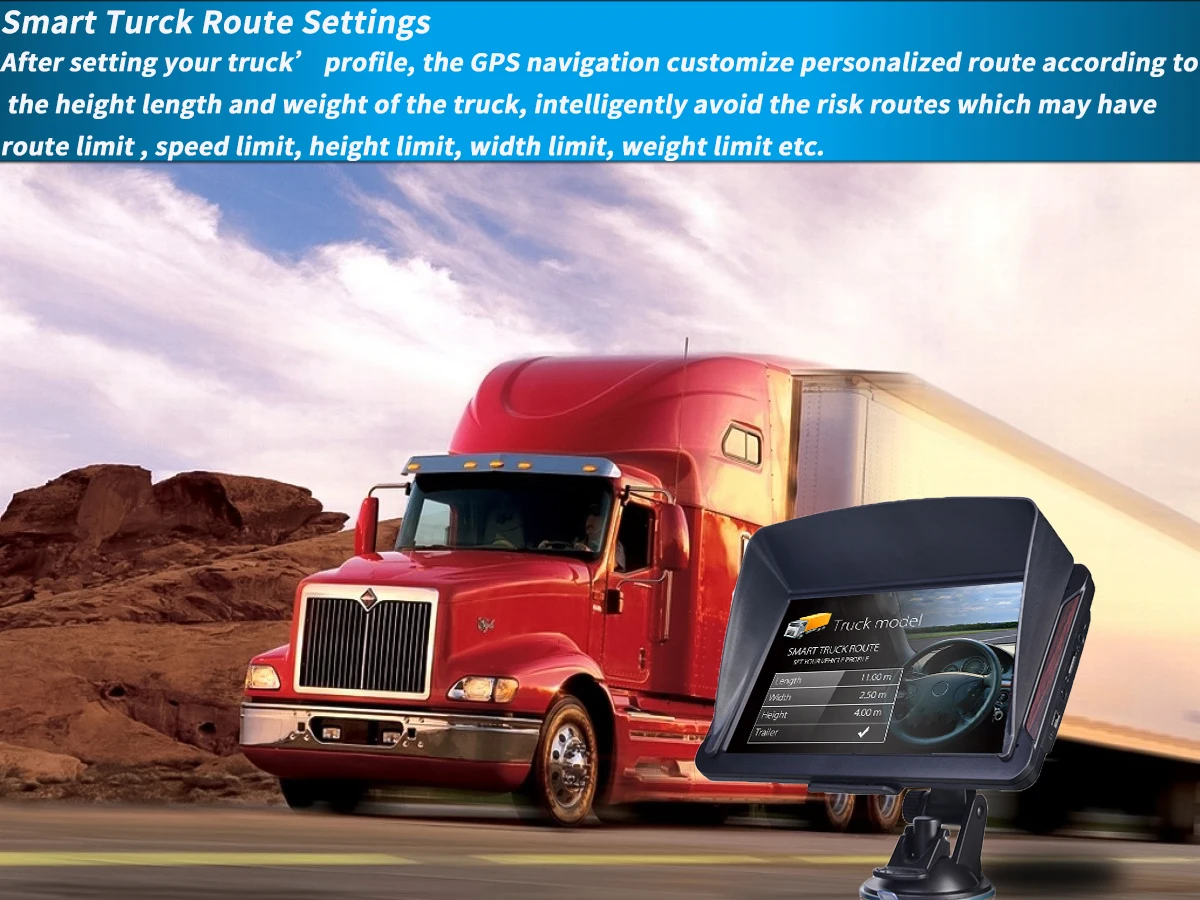 >Умные Настройки маршрута грузовика.После установки профиля вашего грузовика, он будет настроить индивидуальный маршрут в соответствии с длиной и весом грузовика, разумно Избегайте маршрута риска, которые могут иметь ограничение маршрута, ограничение скорости, ограничение высоты, ограничение ширины, ограничение веса и т. Д.