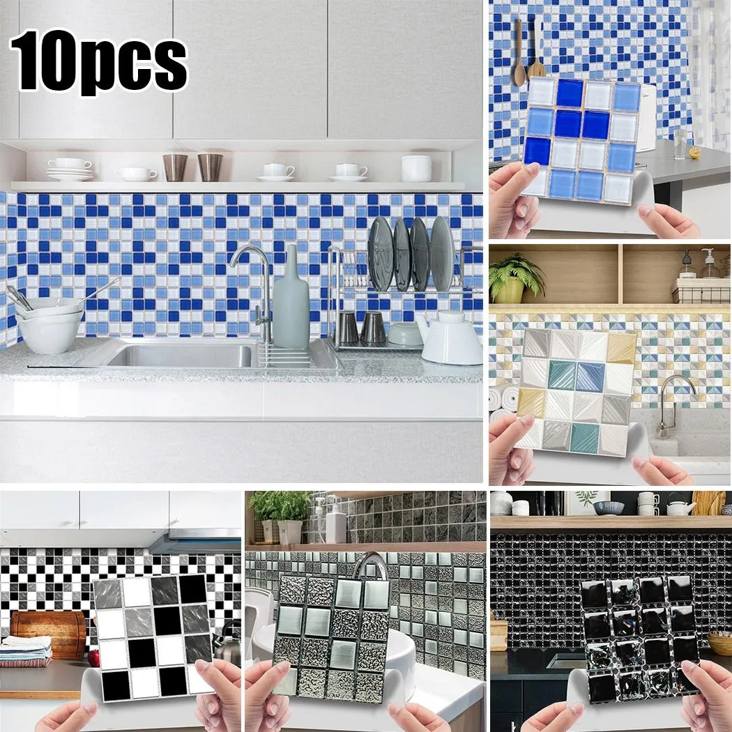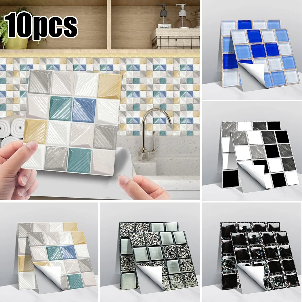 Блестящая мозаика, 10 шт., клейкие плитки наклеек на стену, стены н...