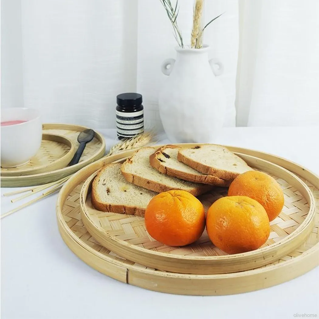 Бамбуковое плетеное сито ручной работы, круглая корзина для фруктов, чая, совок, закусок, хлеба, овощей, кухонный Органайзер