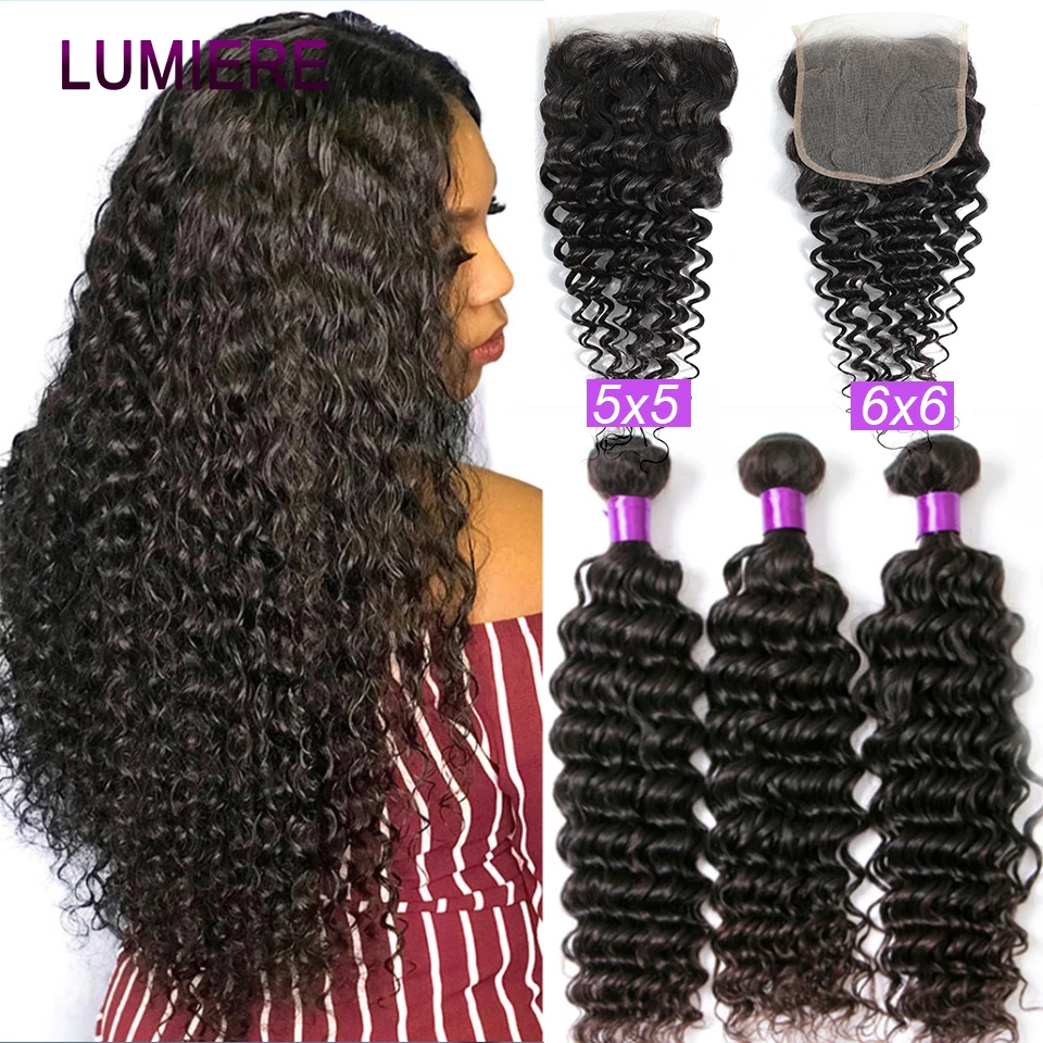 Пупряди с глубокой волной 32, 38, 40 дюймов, с 5X5, 6X6 HD кружевной застежкой, бразильские человеческие волосы, волнистые, волнистые пупряди с застежкой спереди