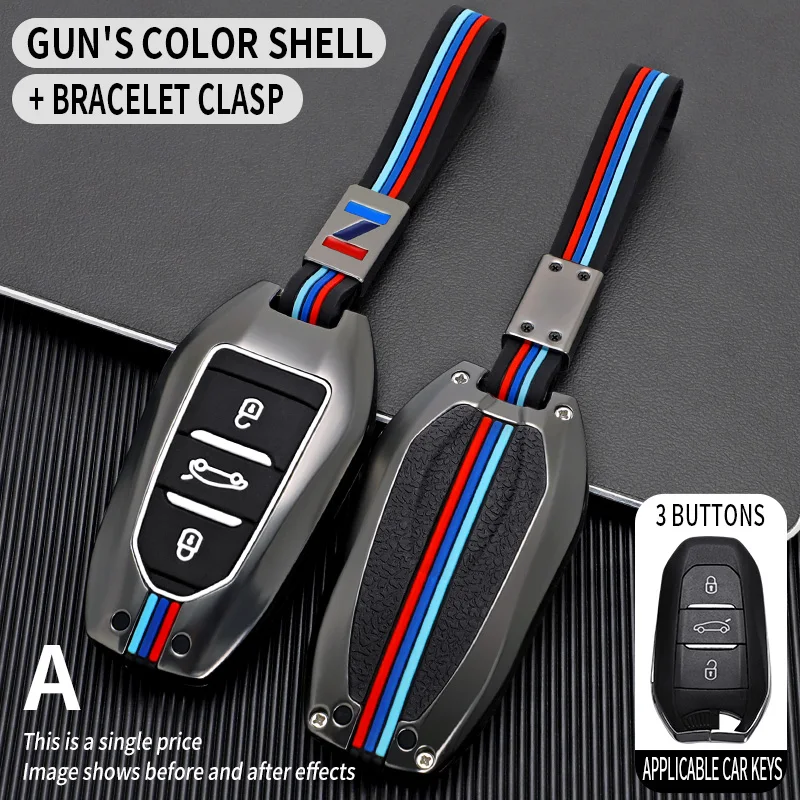 Чехол-брелок для автомобильного ключа из цинкового сплава, чехол-держатель, оболочка, крышка для Peugeot 308 408 508 2008 3008 4008 5008, 3 кнопки, чехол для ключа с дистанционным управлением