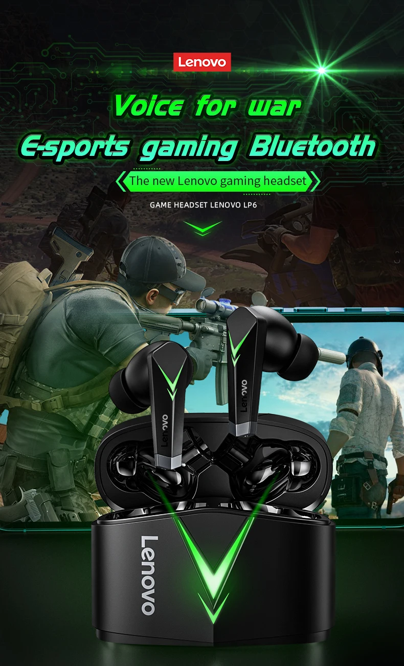 Новые товары, беспроводная гарнитура Lenovo LP6, Bluetooth V5.0, игровая версия True Esports, съесть курицу, Сверхдолгий срок службы, сенсорное управление
