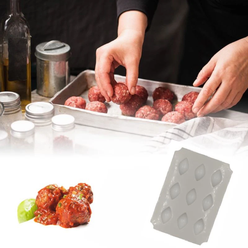 4. Экономит время: экономит ваше время и энергию. Это удобный кухонный инструмент, который может принести вам больше удобства для приготовления пищи. Сферическая конструкция помогает сделать круглые фрикадельки равномерного размера.