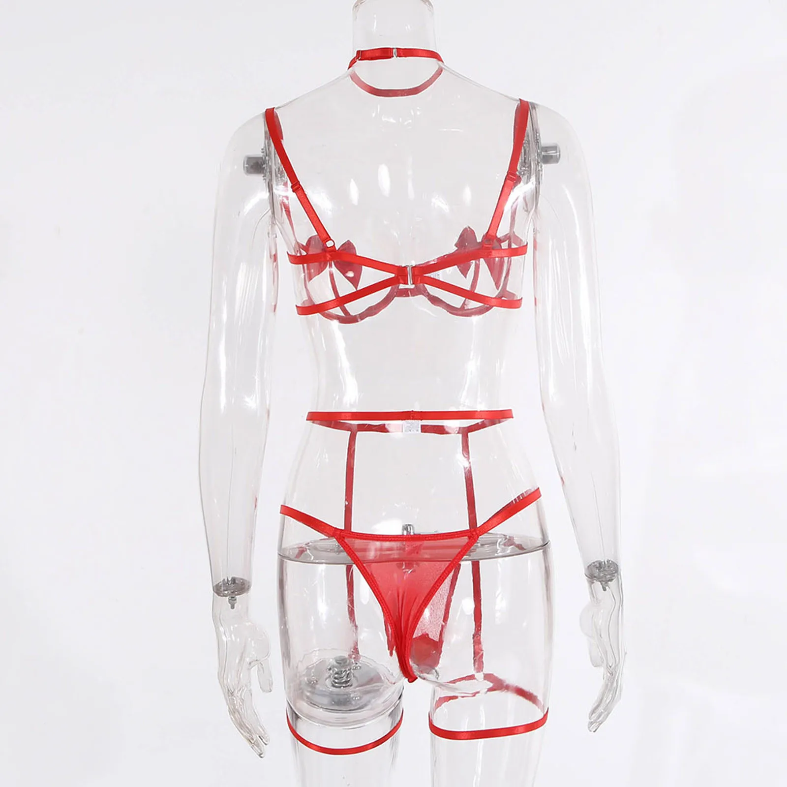 Новый модный красный комплект нижнего белья, сексуальный ажурный бюстгальтер, стринги, подвязки, пояс, чокер, комплект женского нижнего белья, нижнее белье для женщин