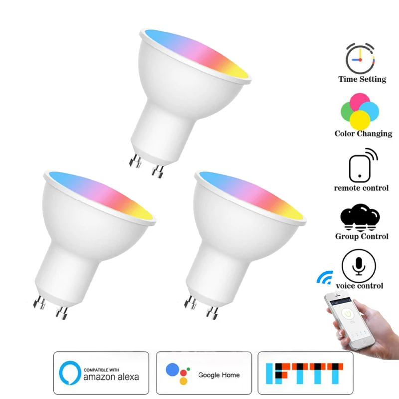 Умная Светодиодная лампа GU10, потолочный светильник с дистанционным управлением через приложение, Wi-Fi, работает с Alexa Google Home