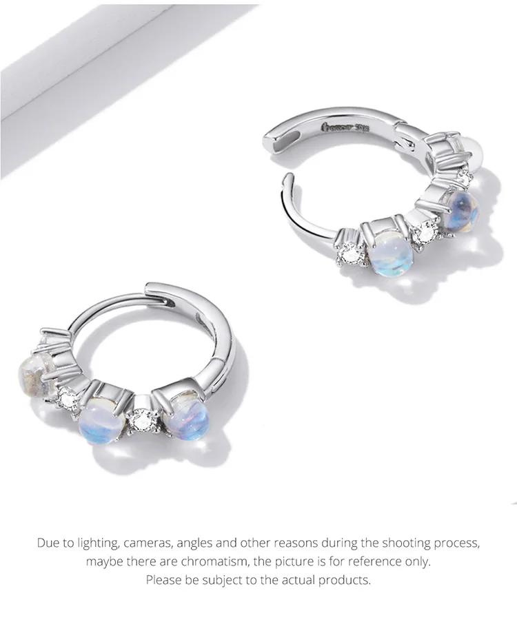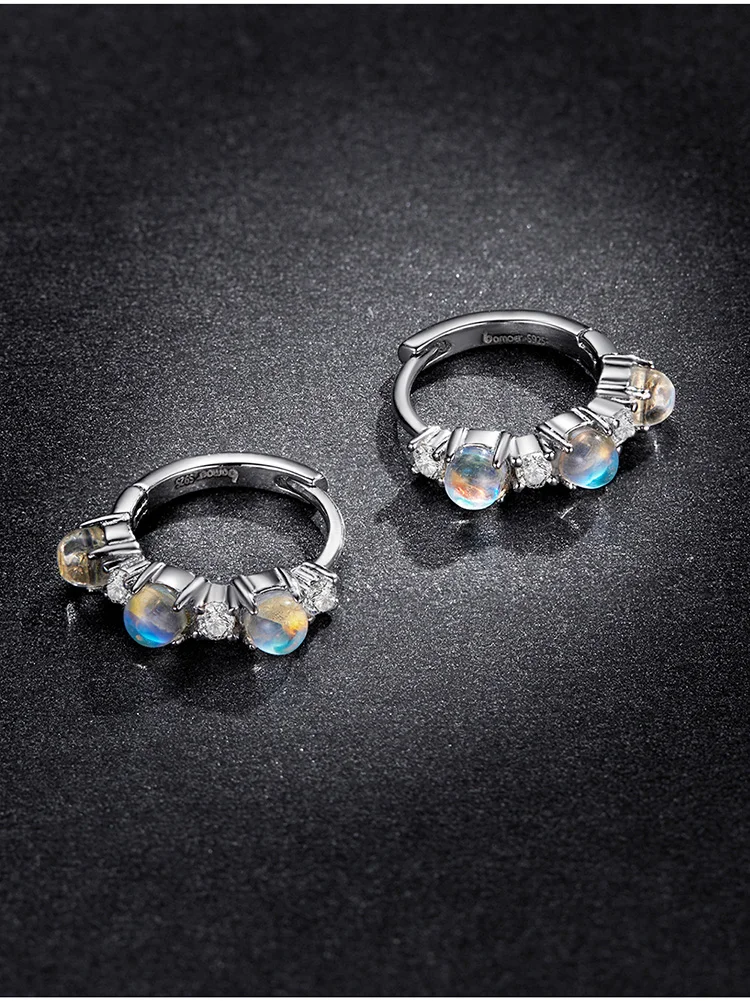 Женские серьги-кольца из серебра 925 пробы с лунным камнем