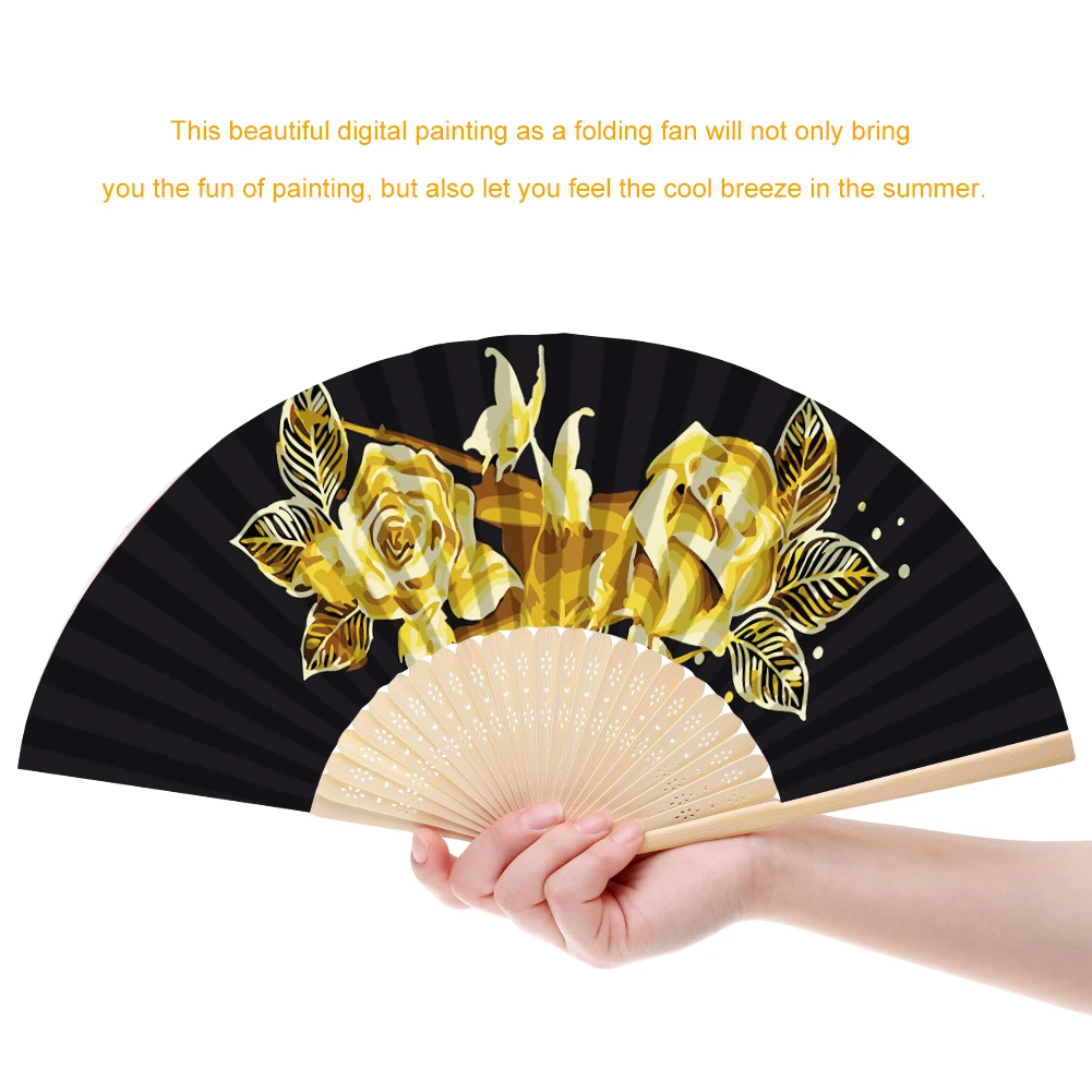 DIY Набор масляных красок с золотыми розовыми бабочками по номерам складной бумажный веер с кодом ручная роспись вентиляторы абстрактная акриловая краска подарки для взрослых детей