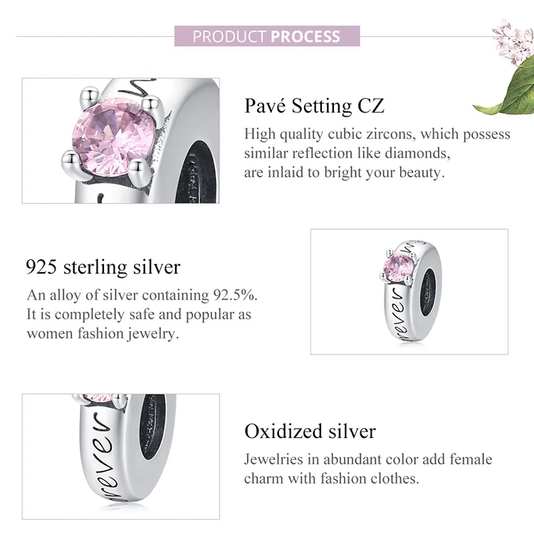 Бусина-Шарм для браслета, серебристого и розового цвета