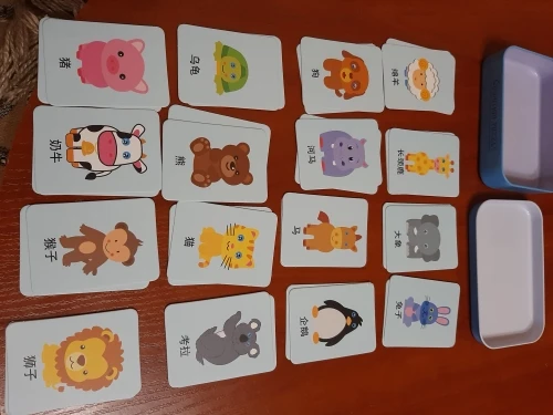 описание точное, отправка немного задержалась и в пути посылка была 37 дней, что в принципе много, но не критично. упакована была в обычный пакет на диплом ленте и конверт с пупырками. металлический контейнер прочный и удобный для хранения карточек. карточки выполнены из хорошего плотного картона и обтянуты прозрачной матовой пластиковой плёнкой для защиты от повреждений и намоканий. на двух карточках эта плёнка немного торчала, я срезал и все норм. карточки яркие, приятные на ощупь. при длительной игре есть шанс выучить начертание китайских иероглифов ("...английский я уже знаю..."). замечательно подойдёт для занятий дома и для логопеда. однозначно буду брать другие наборы из этой серии. полезные карточки для развития мышления и изучения разнообразия в разных категориях.