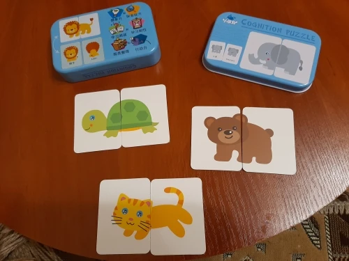 Детские головоломки познавательные игрушки для малышей, железные коробки, карты, подходящая игра, детские товары, наборы фруктов и животных, пазлы для пар