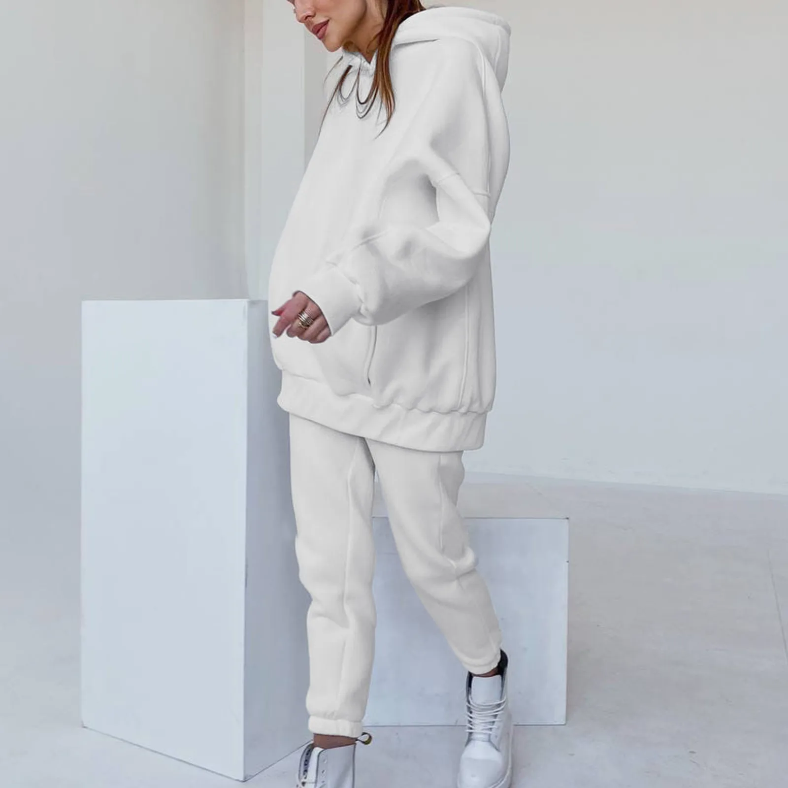 Женские однотонные комплекты, элегантные теплые толстовки с капюшоном и длинные штаны, спортивный костюм для женщин, осень 2021