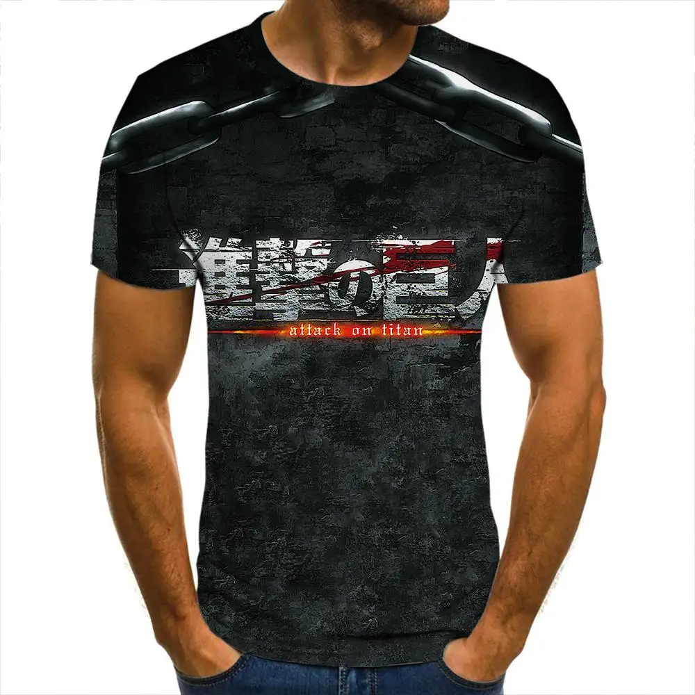 Футболка мужская летняя с 3d рисунком из мультфильма атака на Титанов