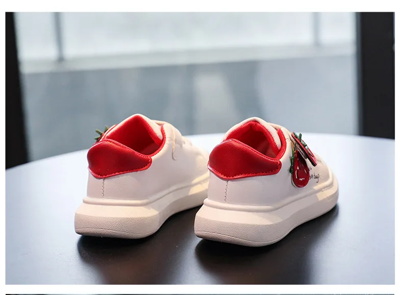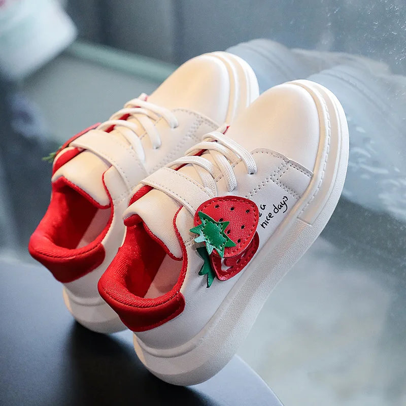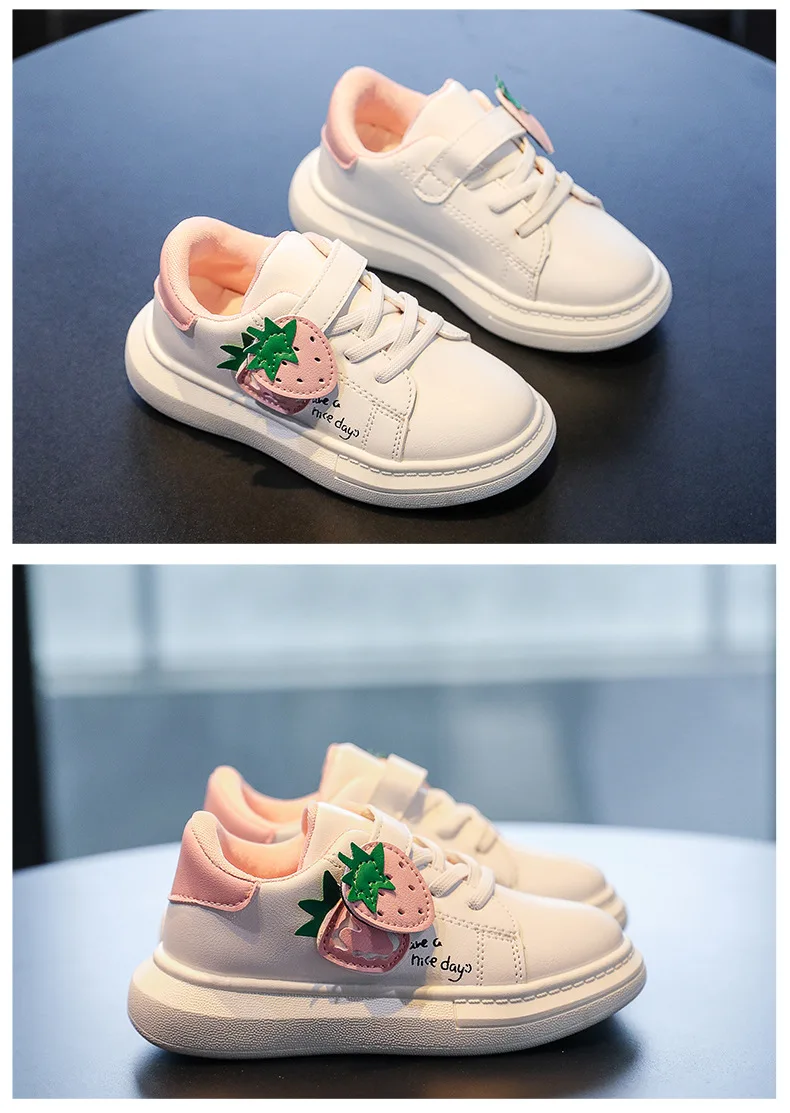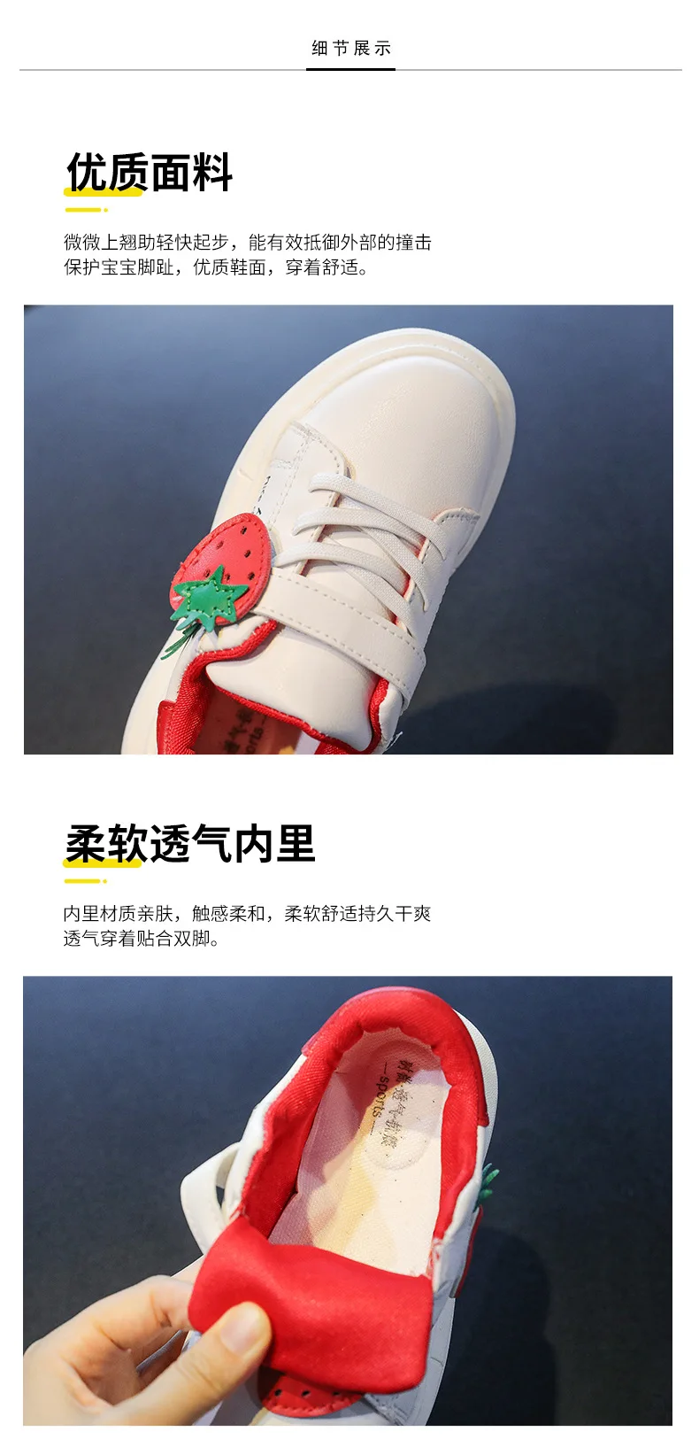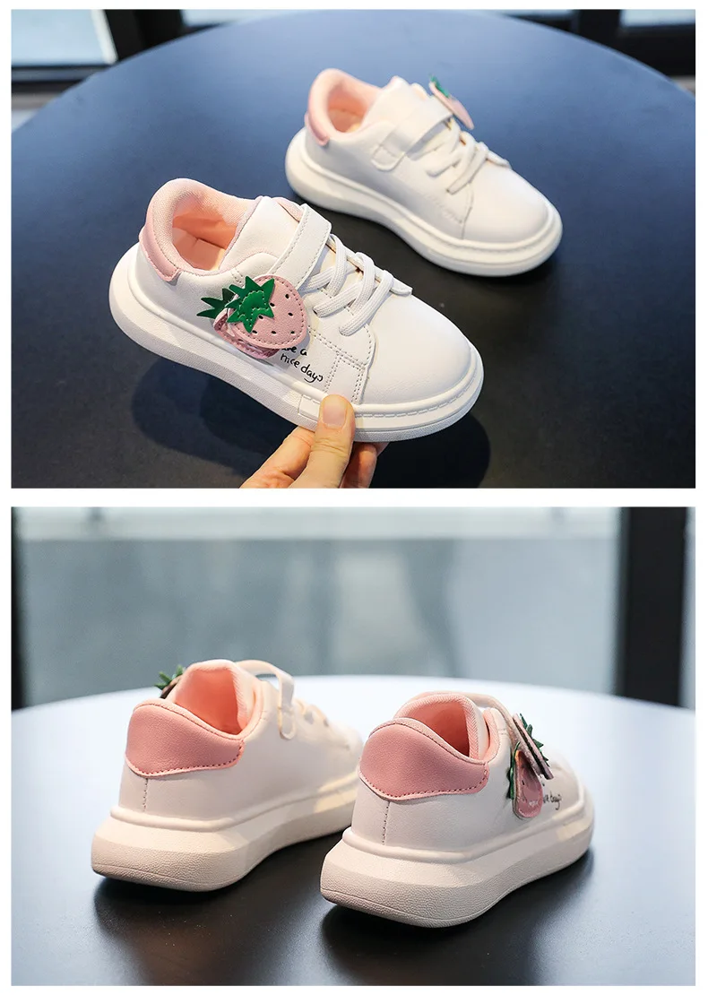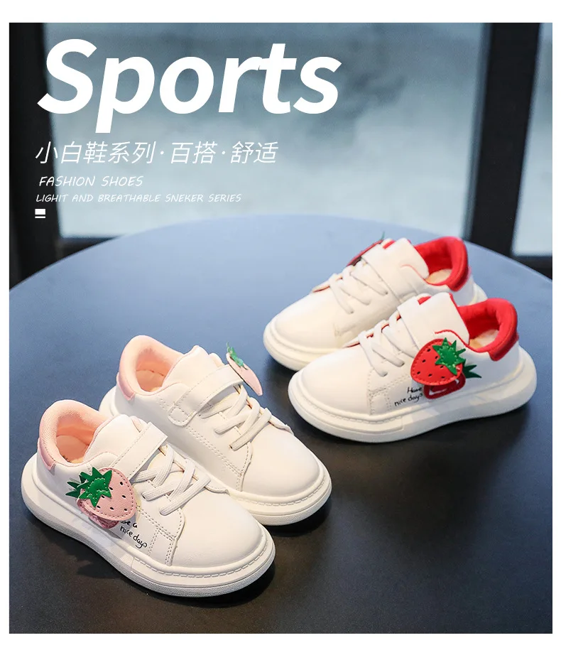Кроссовки детские, с клубничкой, белые, Осенние, на липучке, Size21-30