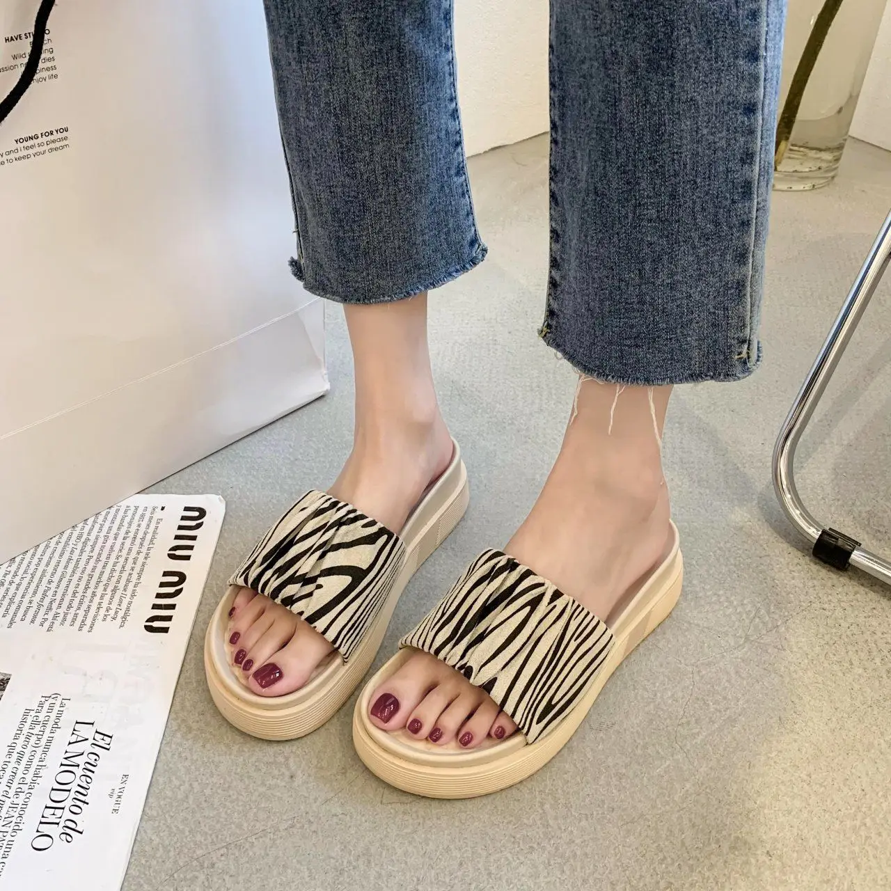 Женские шлепанцы с кружевом, летние шлепанцы с зеброй, уличная одежда, сандалии для колледжа, женские пляжные вечерние сандалии, новинка 2021