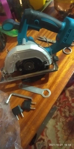 Посылка включает в себя:1 электрическая циркулярная пила1 x /2 x/Нет батареи (опция)1 комплект аксессуаров1 х адаптер батареи (без типа батареи не входит в комплект)