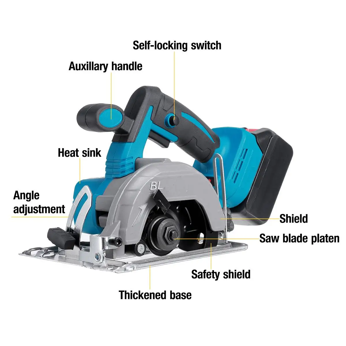 1500 Вт 125 мм Беспроводная электрическая циркулярная пила 45 регулируемая машина для резки древесины пила 21 аккумулятор для батареи Makita 18 в