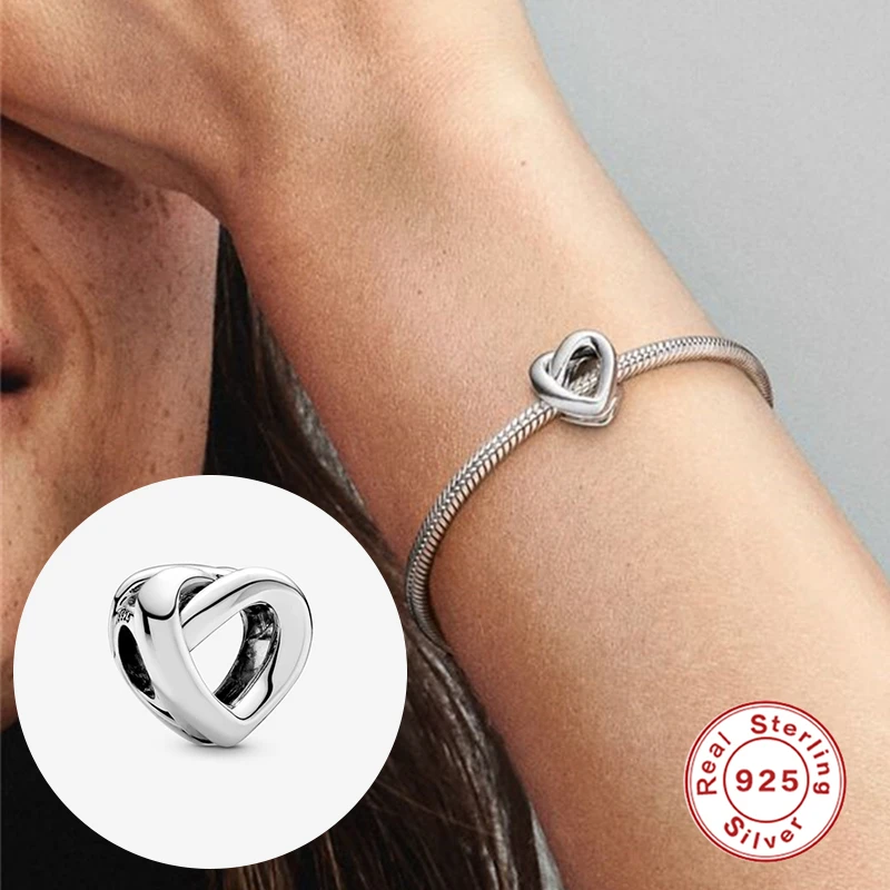 Бусины-шармы из серебра 100% пробы в виде сердца для браслетов