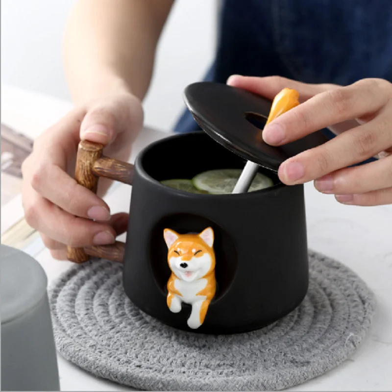 420 мл мультяшная керамическая кружка с собакой милый 3D рисунок с крышкой ложкой любимый подарок для девочек креативная кофейная чашка для молочного чая