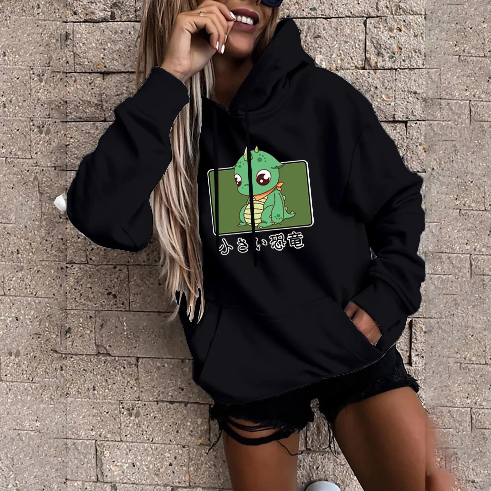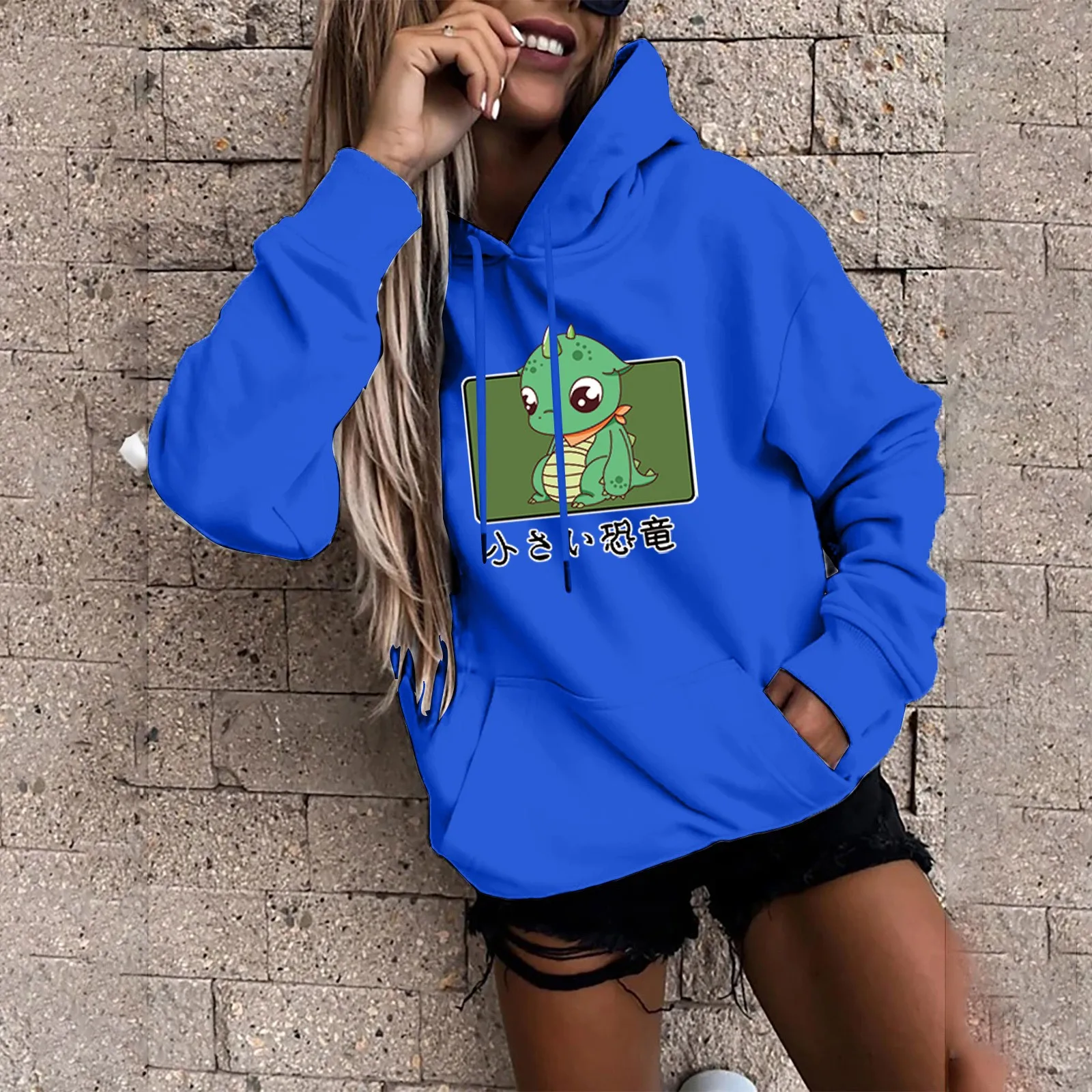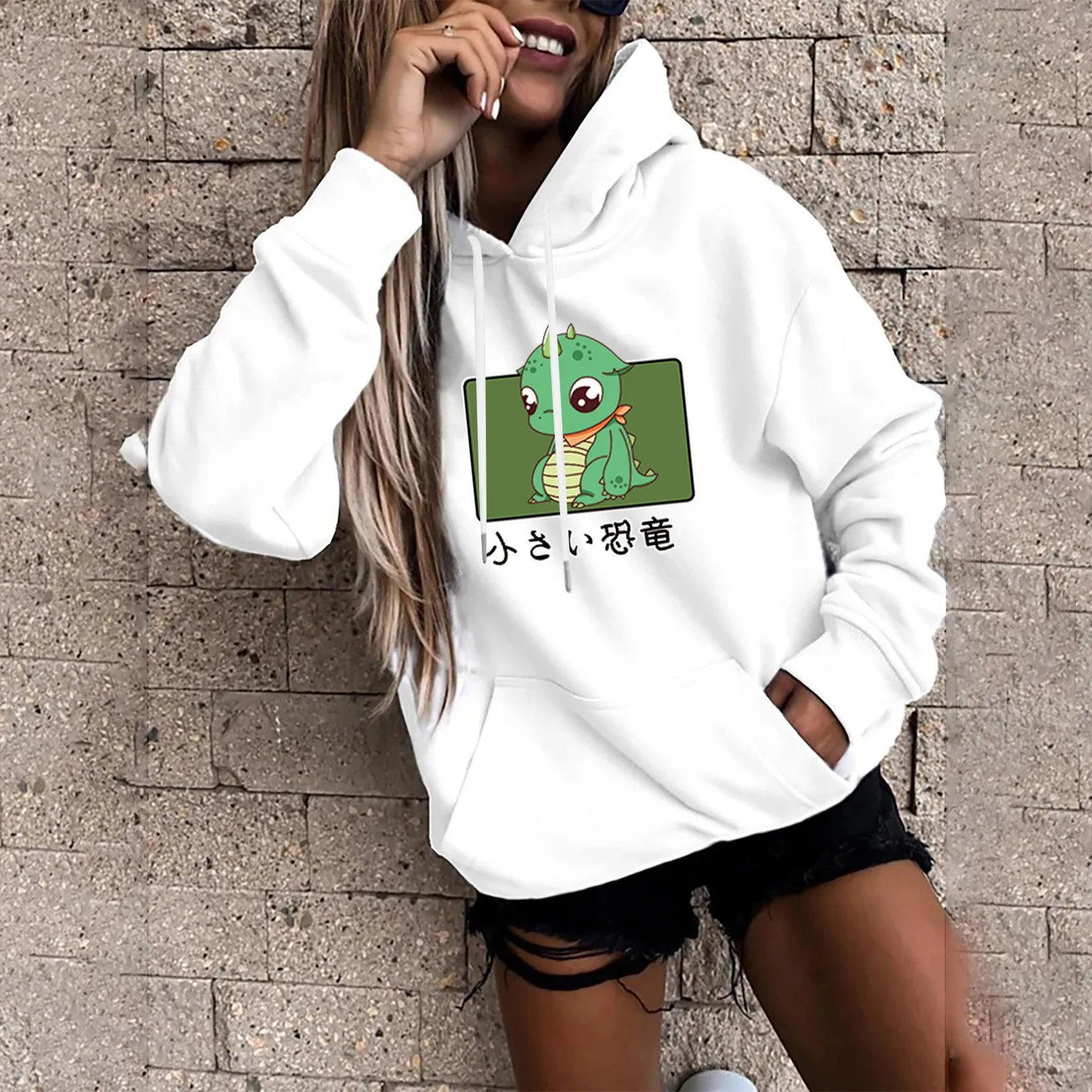 Женская толстовка с капюшоном, свободного кроя, с динозавром, больш...