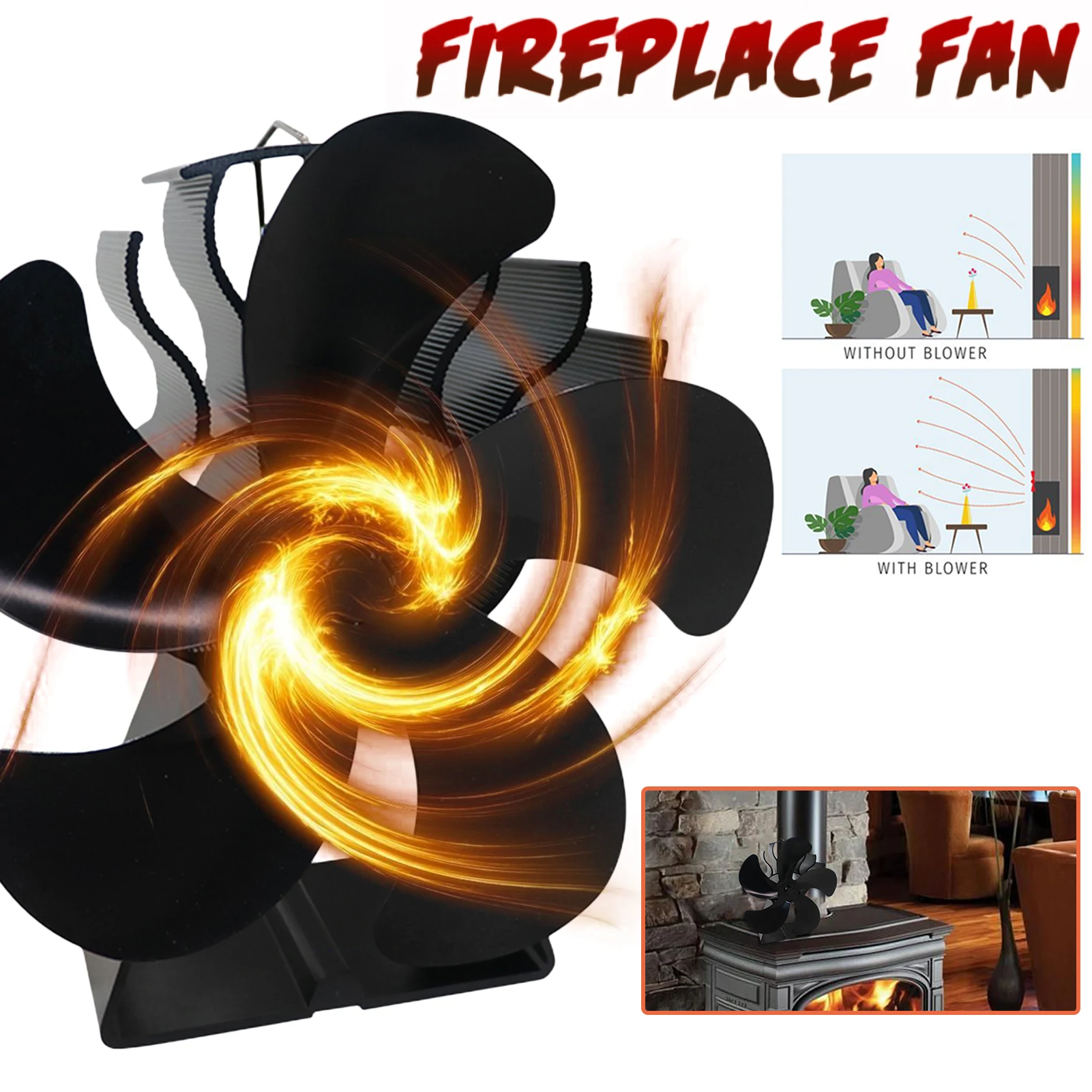 Горелка для черного камина, 5 лезвий, вентилятор для печи, работающий от тепловой энергии деревянная, Ecofan, тихий дом, вентилятор для камина эффективное распределение тепла