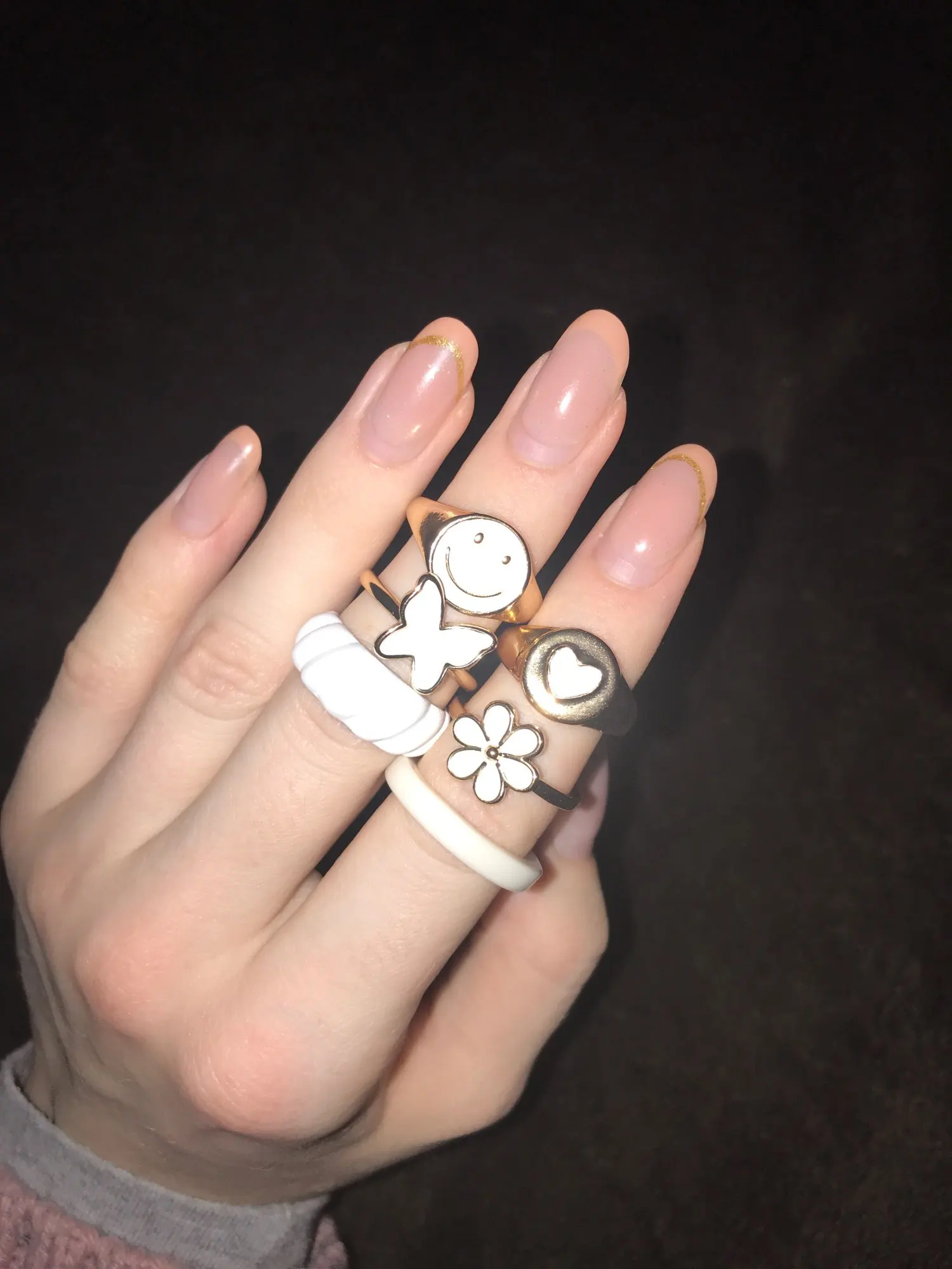 KISS WIFE Винтажный набор колец с улыбкой в виде золотого сердца для женщин, красочные кольца любви, милые кольца на палец для девочек, ювелирные изделия, подарки