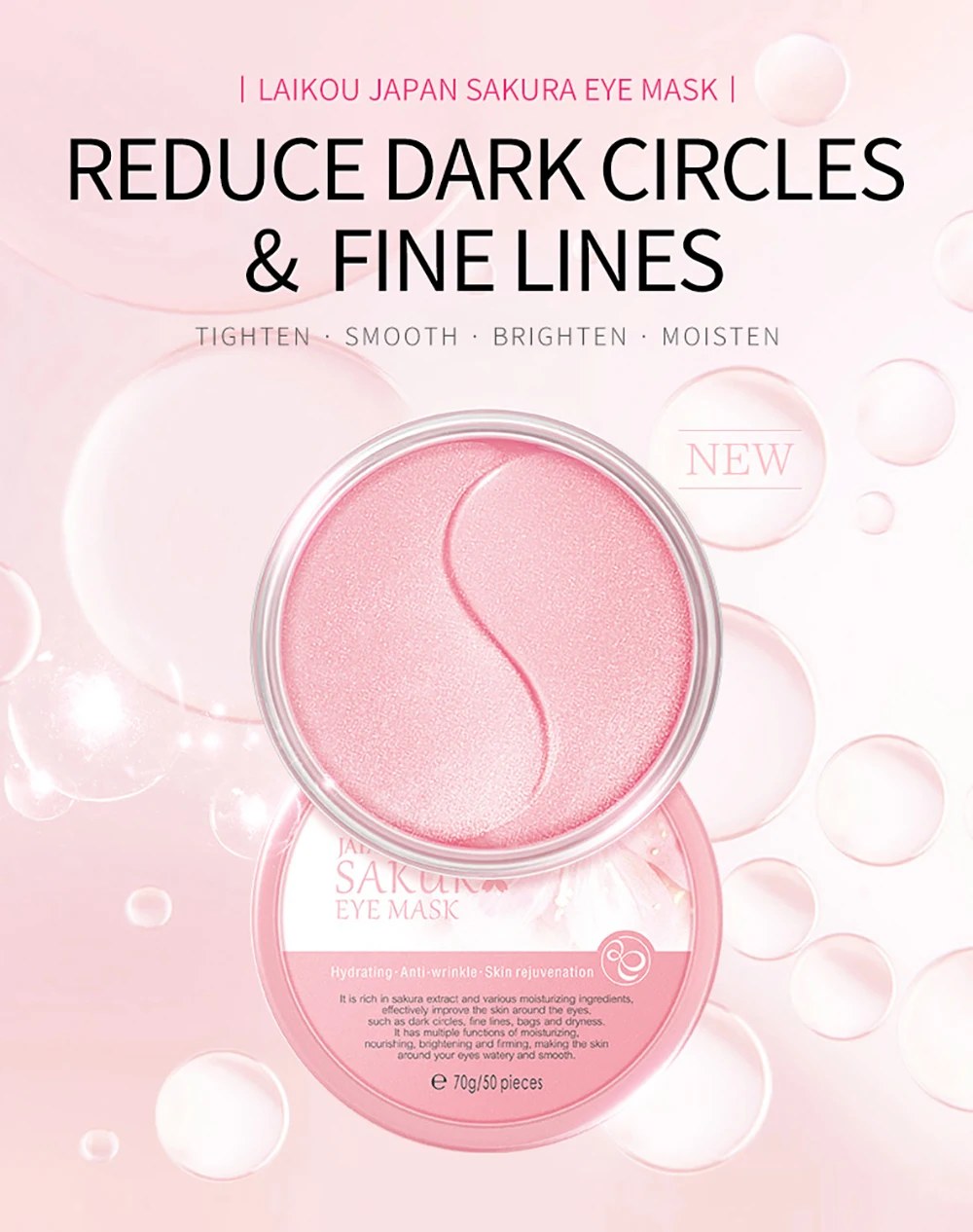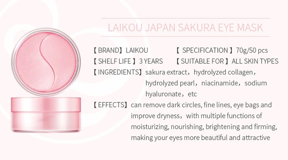 Коллагеновая маска для глаз LAIKOU с цветами вишни, Увлажняющие гел...