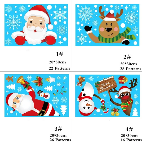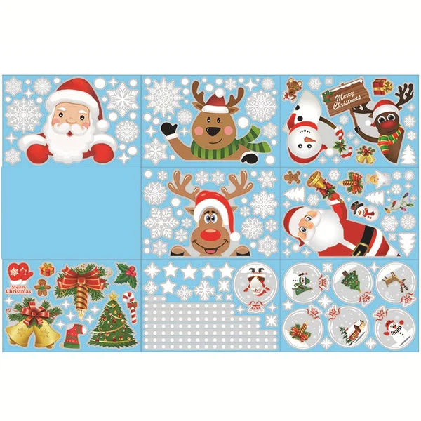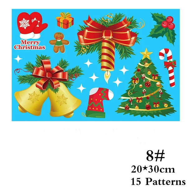 8 видов стилей рождественские милые наклейки, двусторонние статические наклейки на окно и стекло, рождественские украшения, настенные наклейки