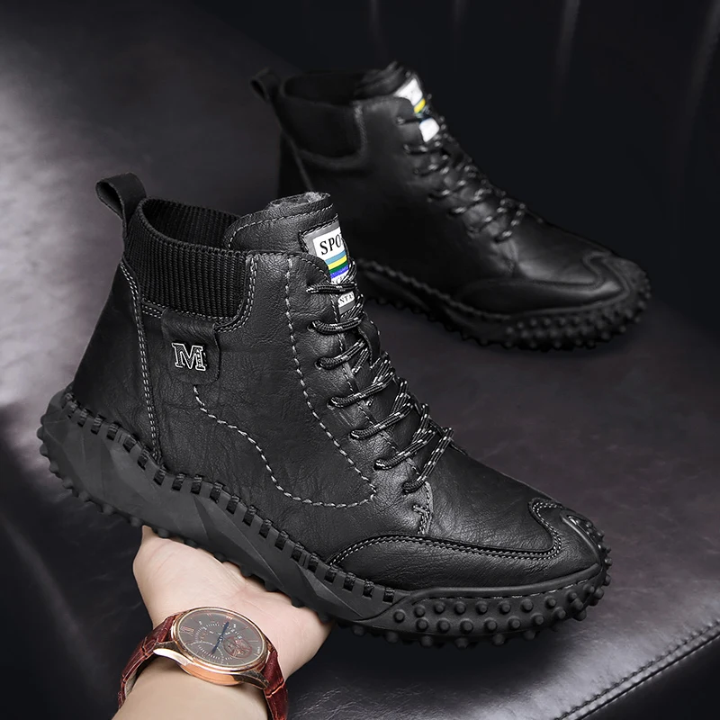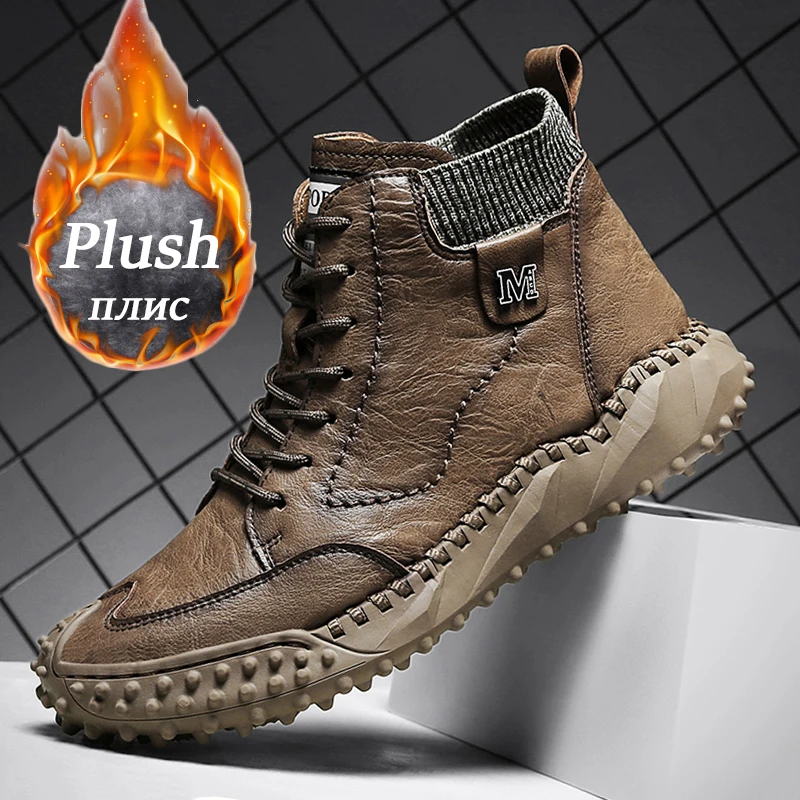 Мужские Водонепроницаемые ботинки ручной работы, коричневые ботильоны из плюша, повседневная обувь, размер 46, для осени и зимы, 2021