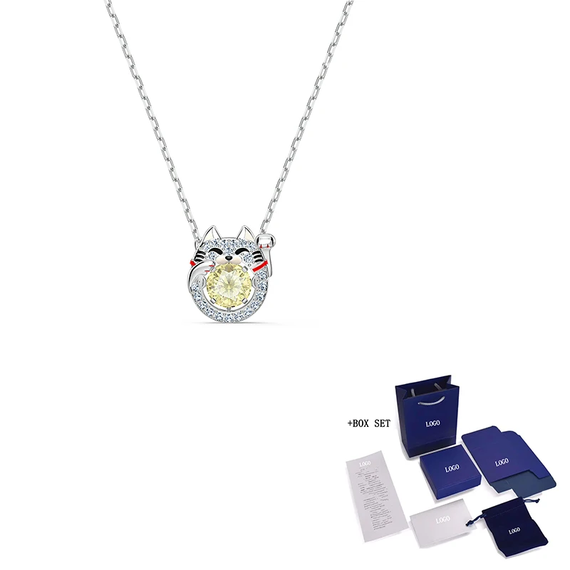 2020 SWA Новое сверкающее ожерелье с котом танец счастливая удача счастливая кошка украшение кристалл ожерелье Женская Роскошная Модная бижутерия подарок