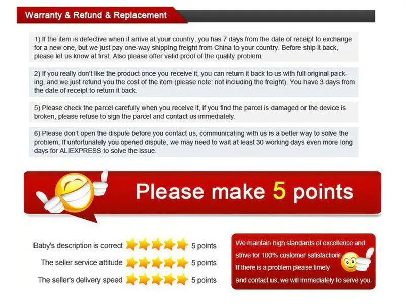4. Наши продукты поддерживают политику бесплатного возврата AliExpress.
