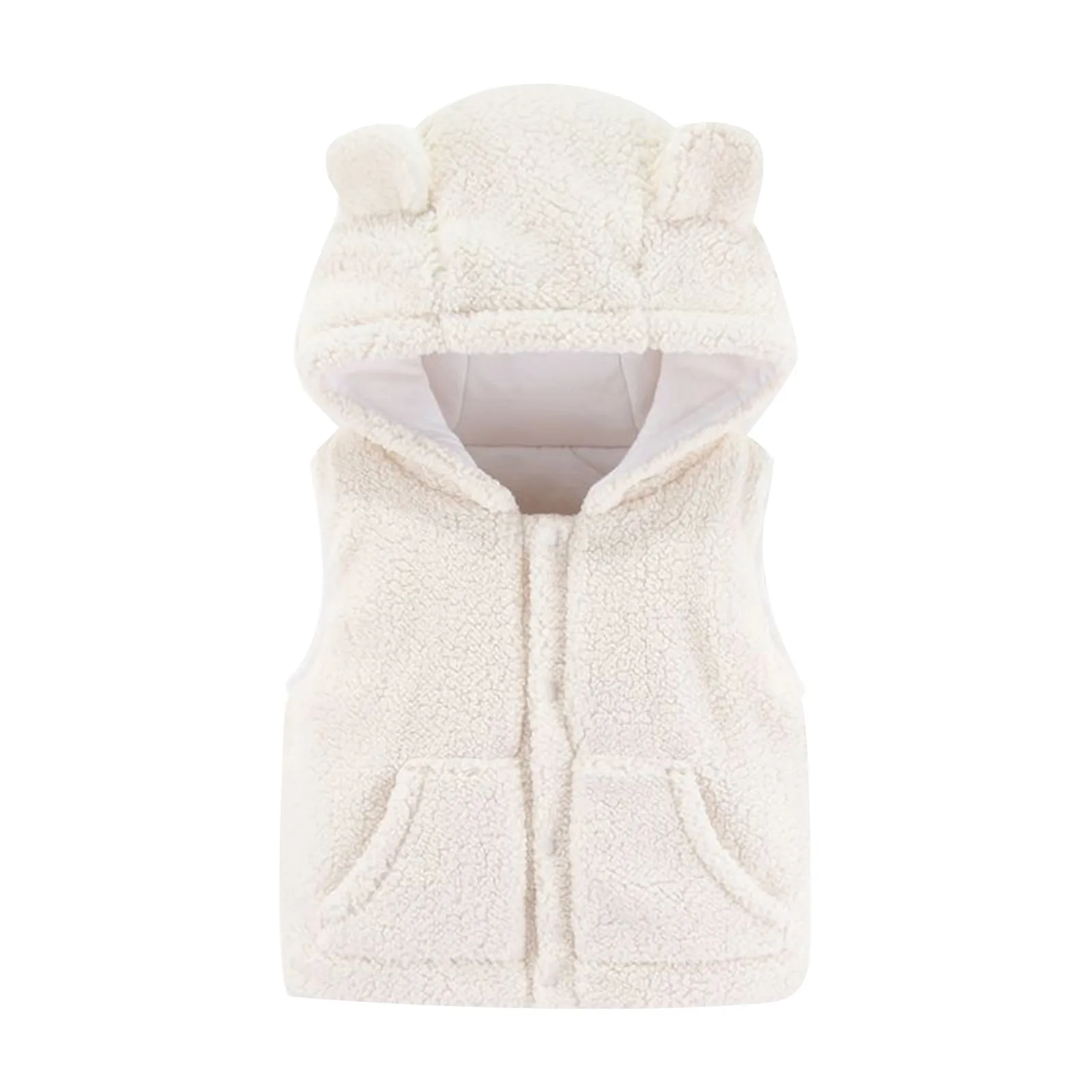 Детский флисовый однотонный жилет с капюшоном, ветрозащитный фланел...