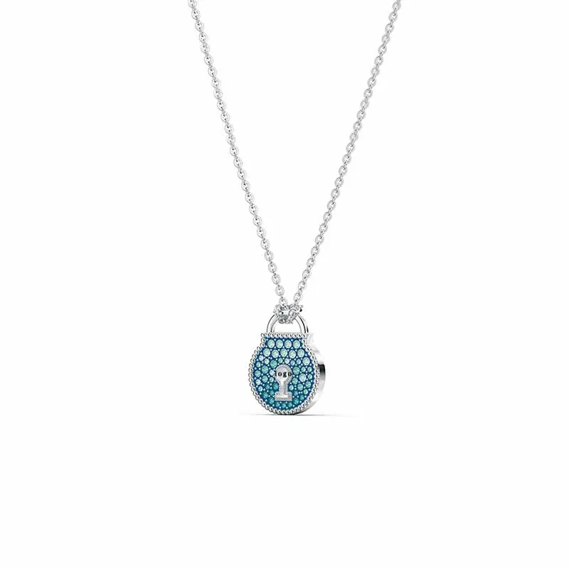 SwaNew Blue Heart-Shaped Lock Love White Gold Necklace
